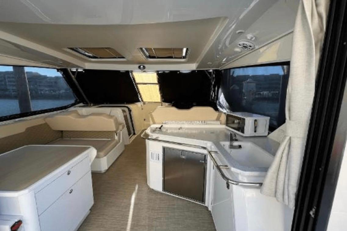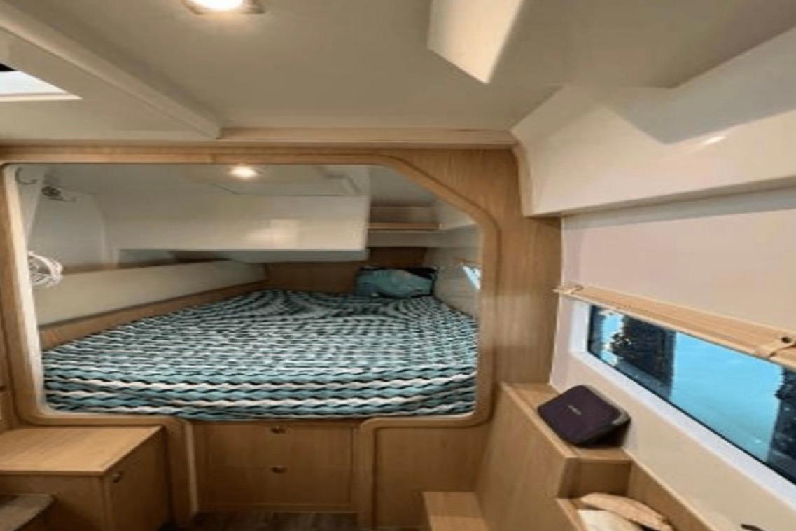 Step inside, and you’ll be impressed with just how much space has been maximized into this platform. With two private staterooms, a full head, ample seating, and a well-equipped galley, this yacht comfortably accommodates both family and guests. This layout provides the feel of a much larger vessel while still being easy to handle and dock.