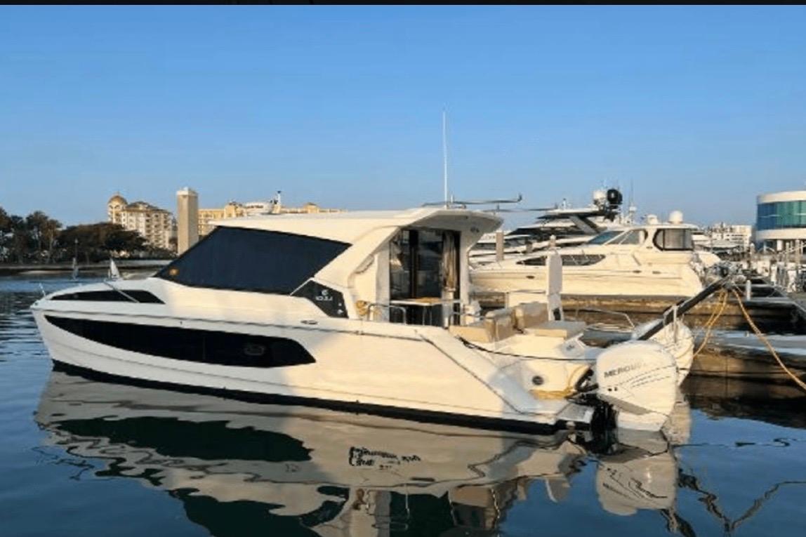 Powered by twin 400 Mercury outboards, she offers exhilarating performance with a top cruising speed around 25–28 knotsand the ability to sprint to higher speeds when needed. Designed with efficiency and stability in mind, the Aquila 36 balances speed and comfort for extended cruising or day trips.