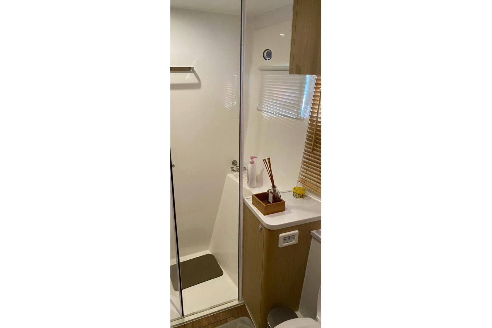 Comfort is a hallmark of the Aquila 42, made possible by its premium chilled water air-conditioning system designed specifically for tropical climates. No matter how hot or humid the environment, every cabin and common area remains cool and comfortable, allowing passengers to relax in true luxury. Below deck, the yacht offers generous accommodations with beautifully appointed cabins that reflect Aquila’s attention to detail and craftsmanship. Each space is designed to provide privacy, tranquility, and ample storage for extended stays on board. High-quality materials, refined finishes, and thoughtful lighting combine to create an ambiance that feels both contemporary and timeless.