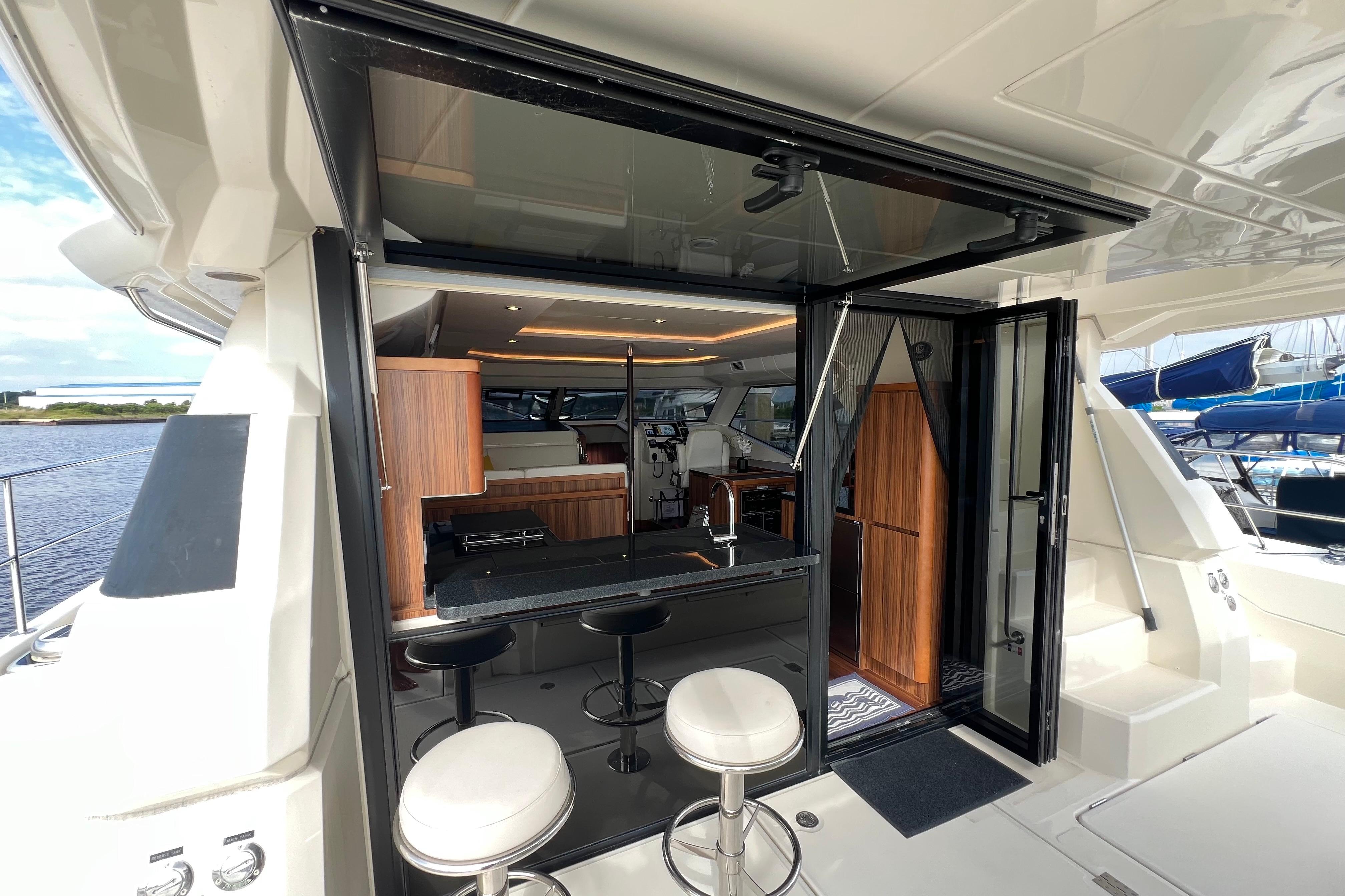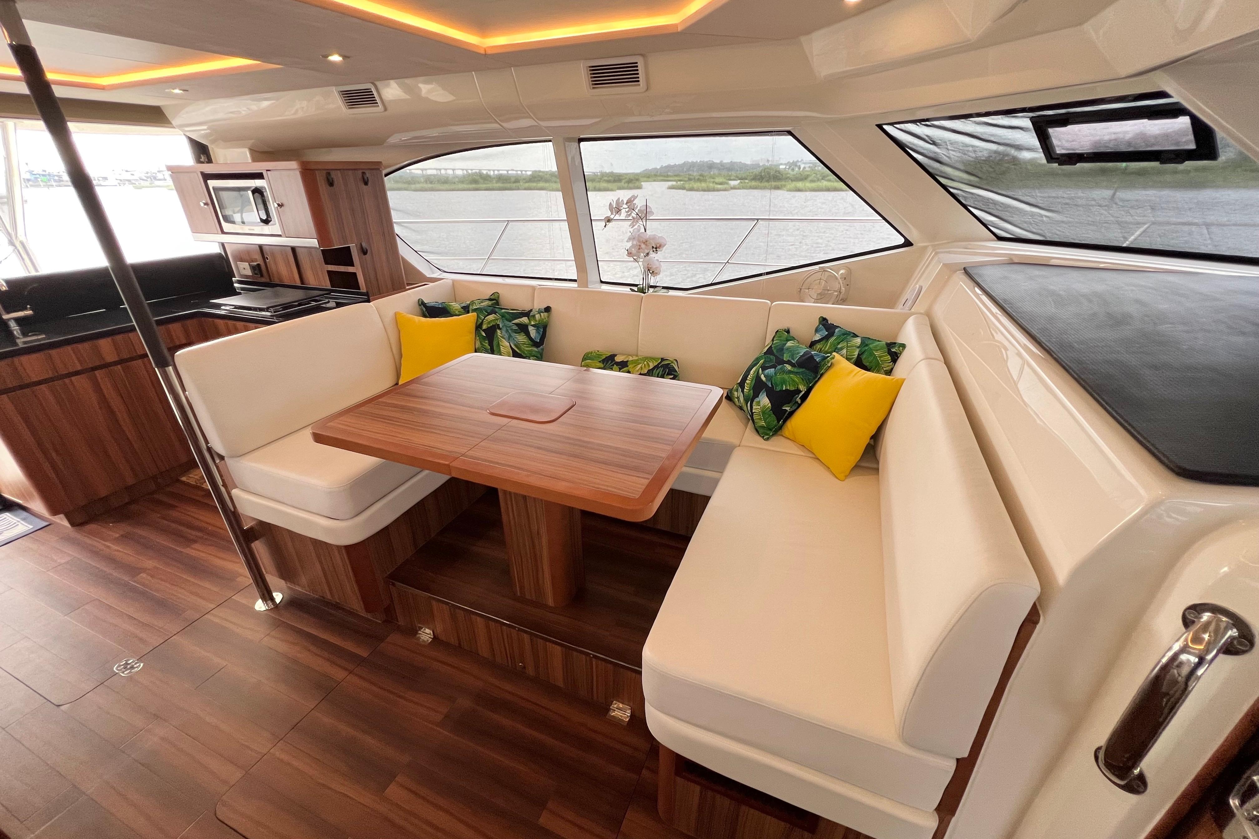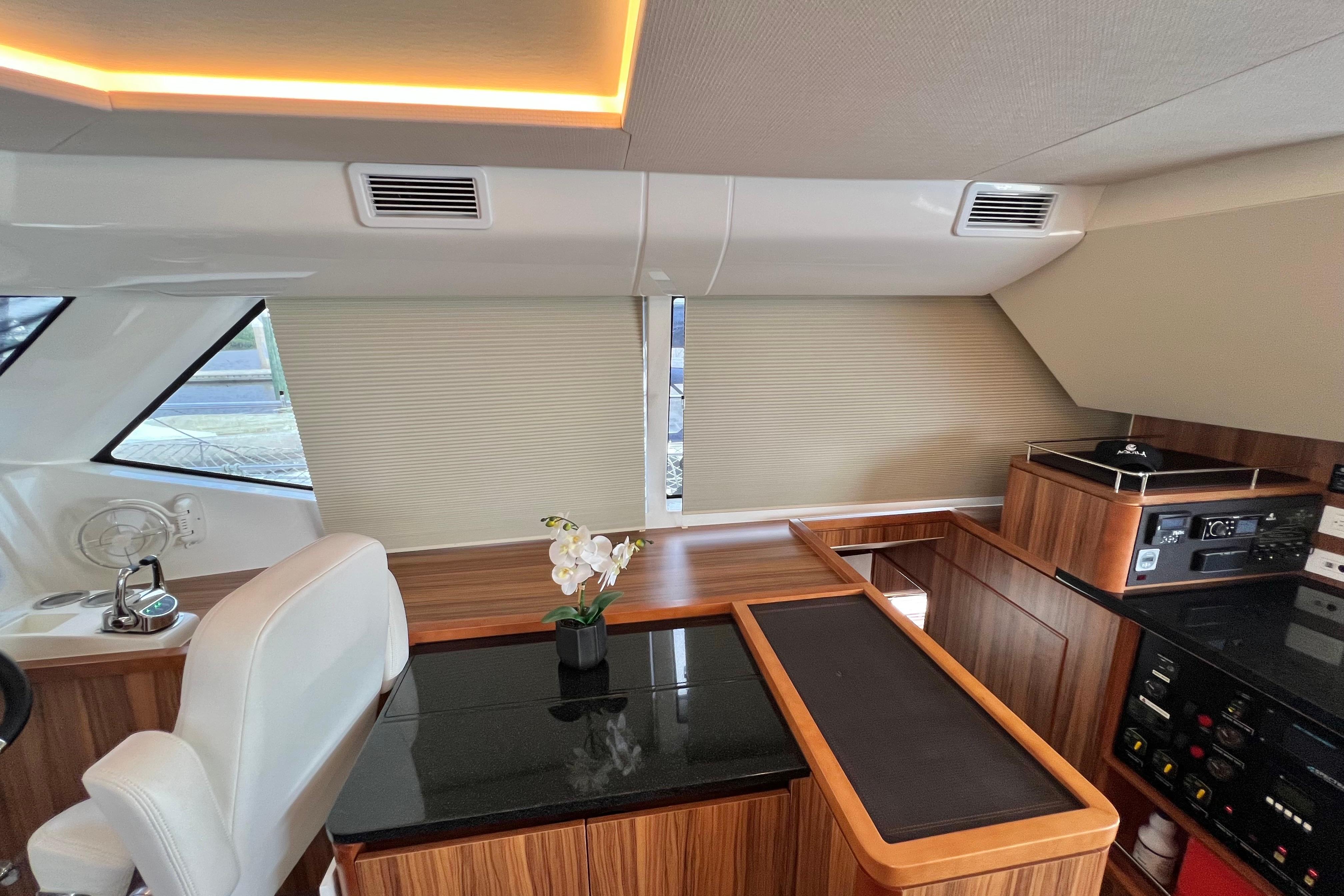Retractable blinds throughout salon and cabins