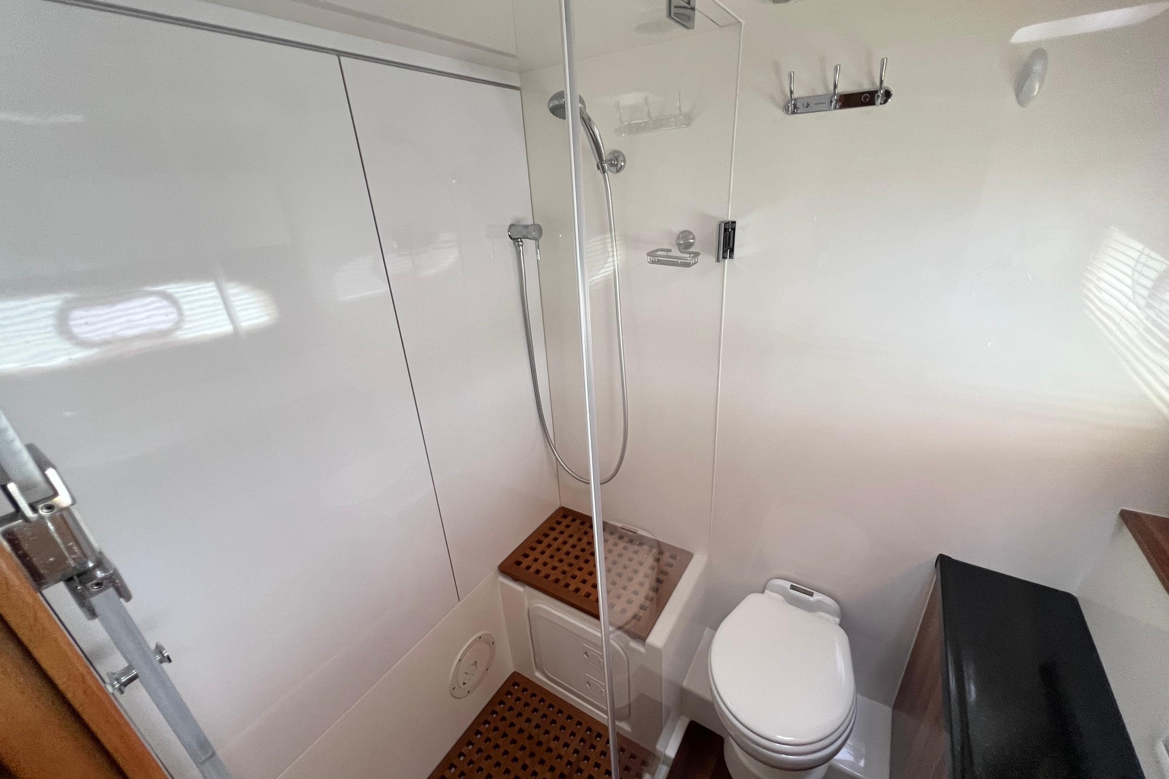 Spacious head with large separate shower stall