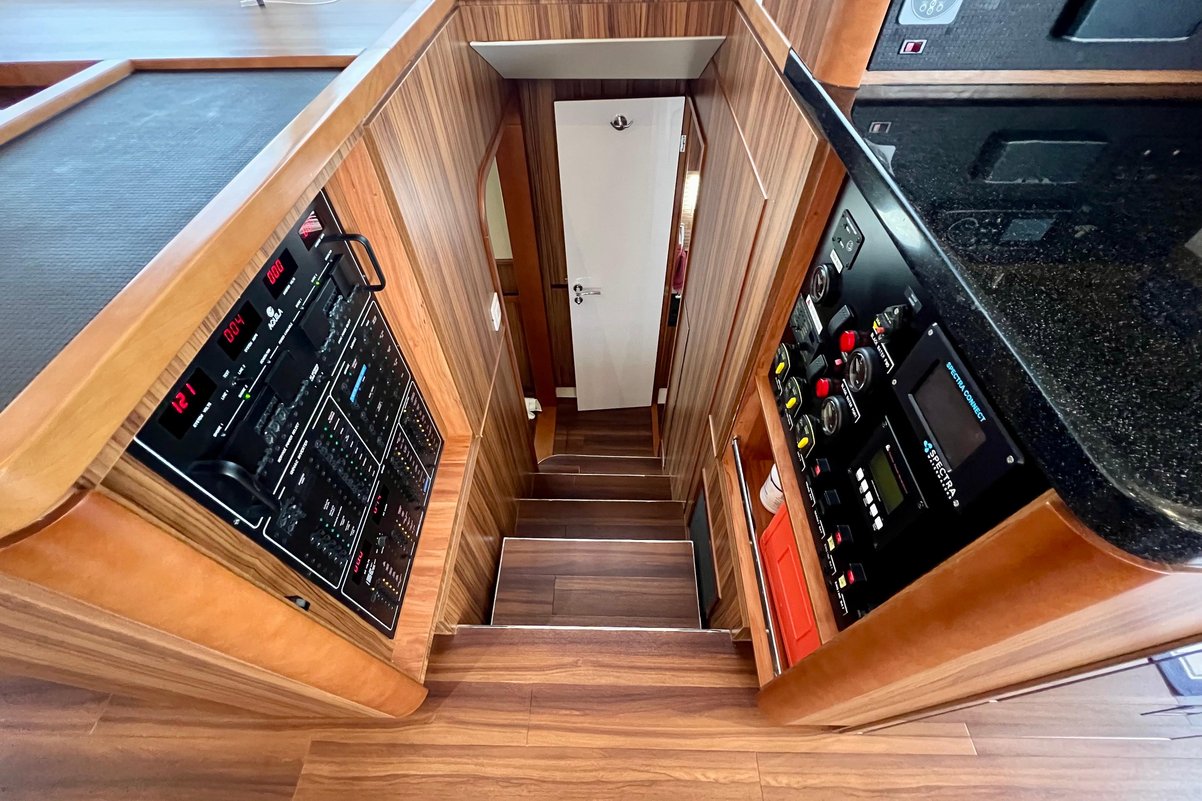 Tonga Time also incorporates a custom hard top above the flybridge. Designed by Atlantic Towers, it provides a location for the large solar array and better weather protection than the factory hard top.