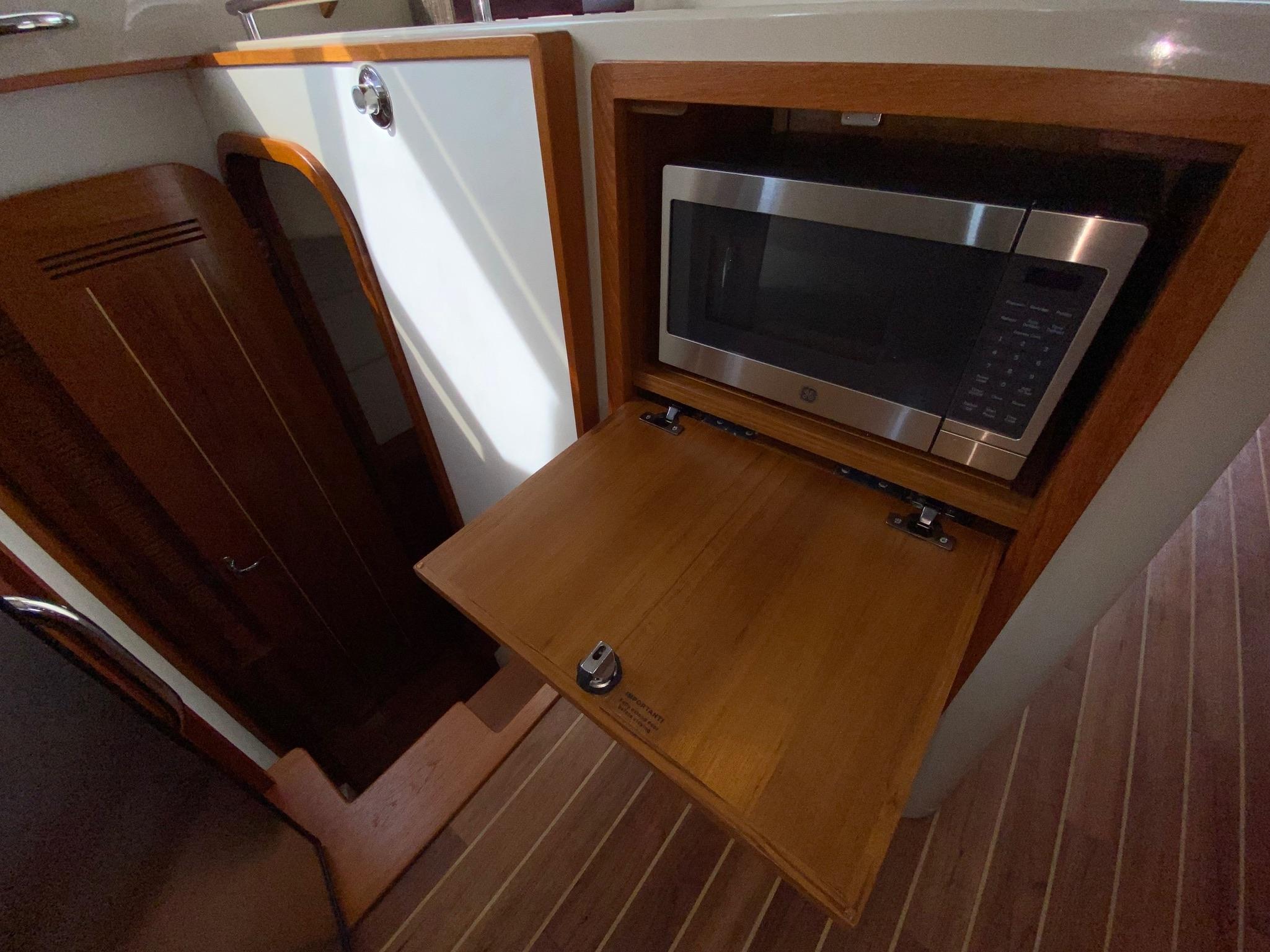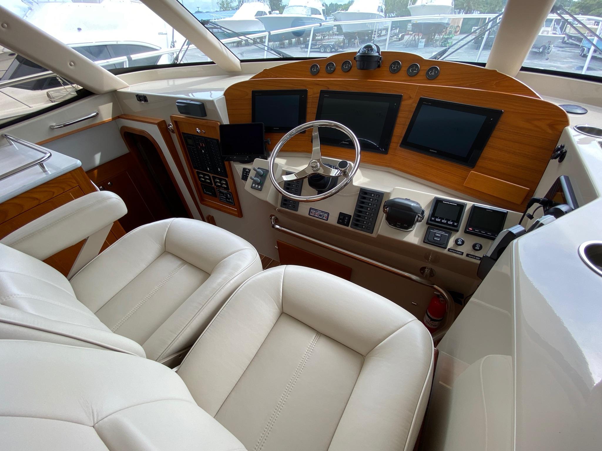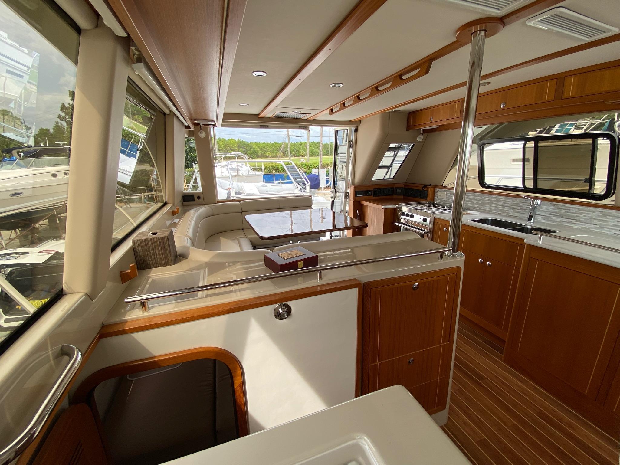 The modern design starts in the salon with an amazing open window layout that brings the grand outdoors right to you. Enjoy Mother Nature in all of her glory with a 360 degree view from every seat! Each hull has a first class head with a shower and large vanity. Below the dinette is a queen size guest stateroom, complete with hanging locker, portlights, and reading lights. Below the galley is a 2nd guest stateroom with a twin bed, portlights, and reading lights. Forward is the absolutely grand, full width, King Island Master stateroom; unheard of in a 40’er. This stateroom includes port & starboard hanging lockers, drawer sets, starboard vanity.