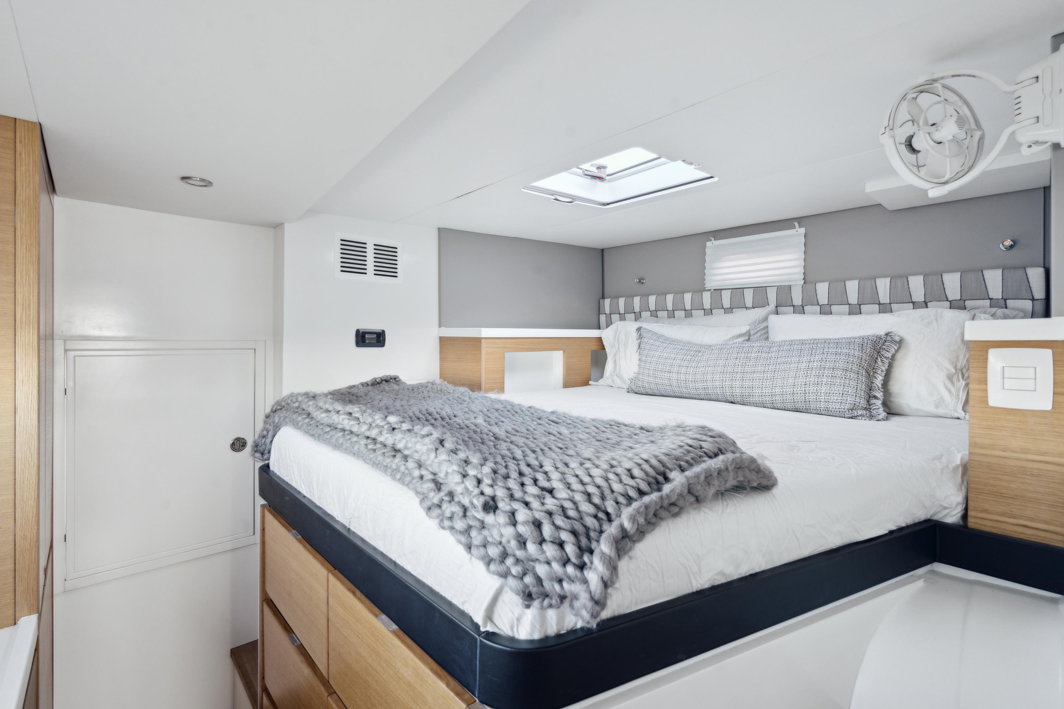 Supergirl is the ideal balance of both comfort at anchor and performance underway. With her 3-Cabin Owner Version configuration, the Balance 442 easily accommodates six people in 3 Queen-sized berths.Supergirl features custom upholstery and interior finishings, a large U-shaped galley, and features real American Oak hand-crafted cabinetry.