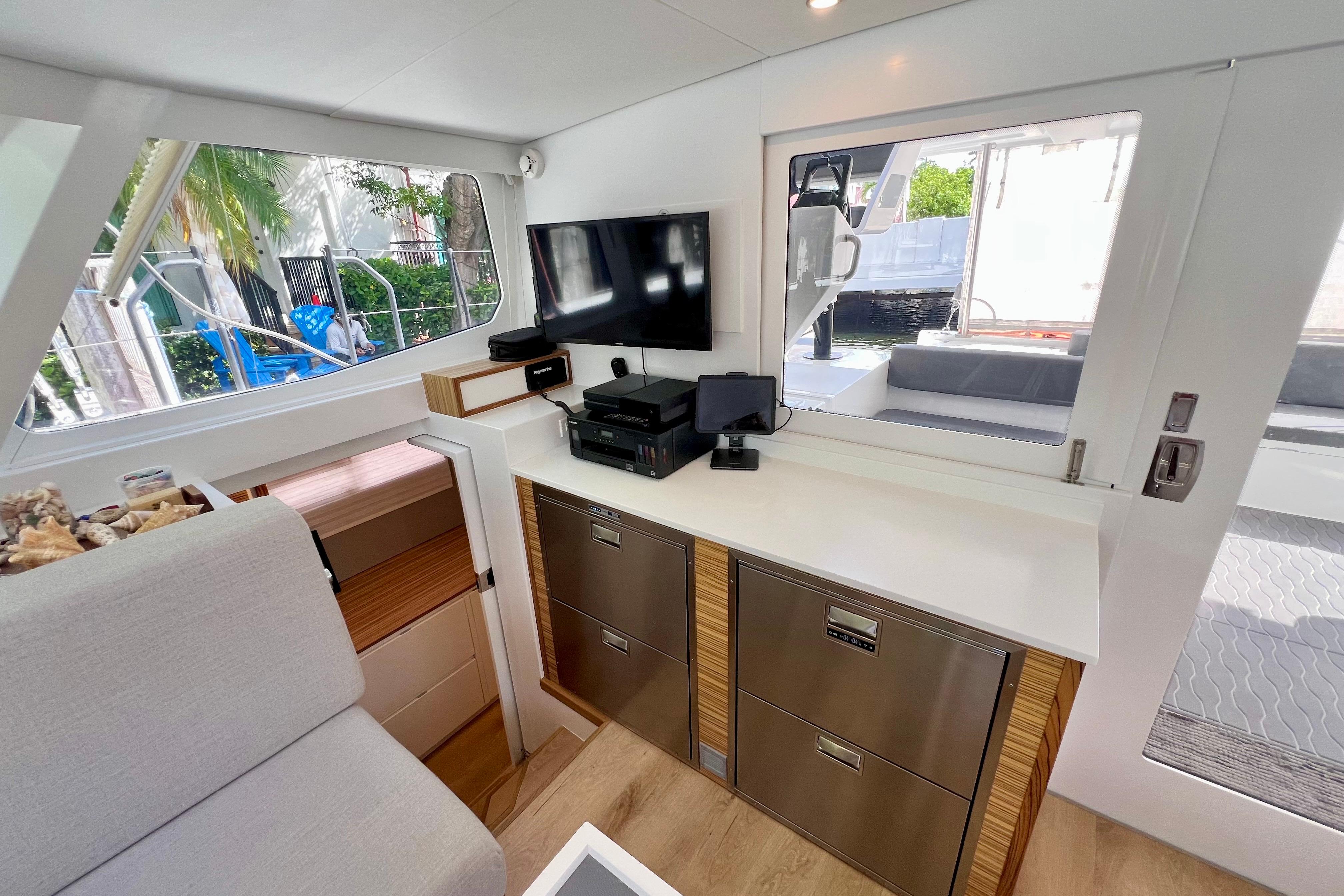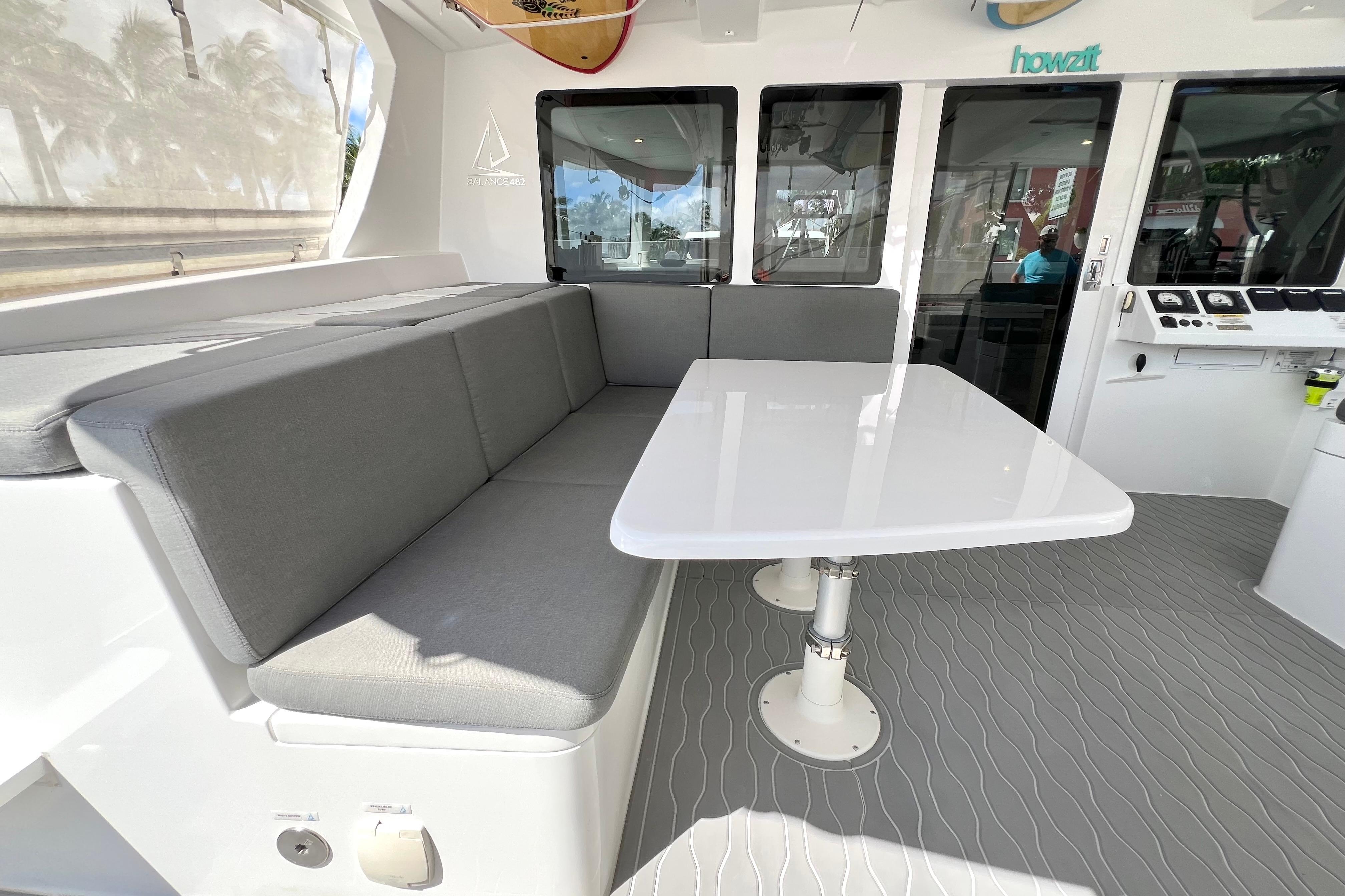 Ke’Ala is a pleasure to move about on whether sailing alone or entertaining friends and family. Her ample payload capacity means there is a place to store everything on the 482. Seating and lounge areas are strategically located throughout the cockpit and accommodation areas to ensure a fantastic hosting platform. With the innovative Balance VersaHelm – the helm station swings up and down with ease which revolutionized all weather sailing. You can pilot her up top in the sunshine and breeze or swing the helm down for full foul weather protection in the comfort of the cockpit – both positions offer unobstructed 360 degree visibility and comfortable seating.