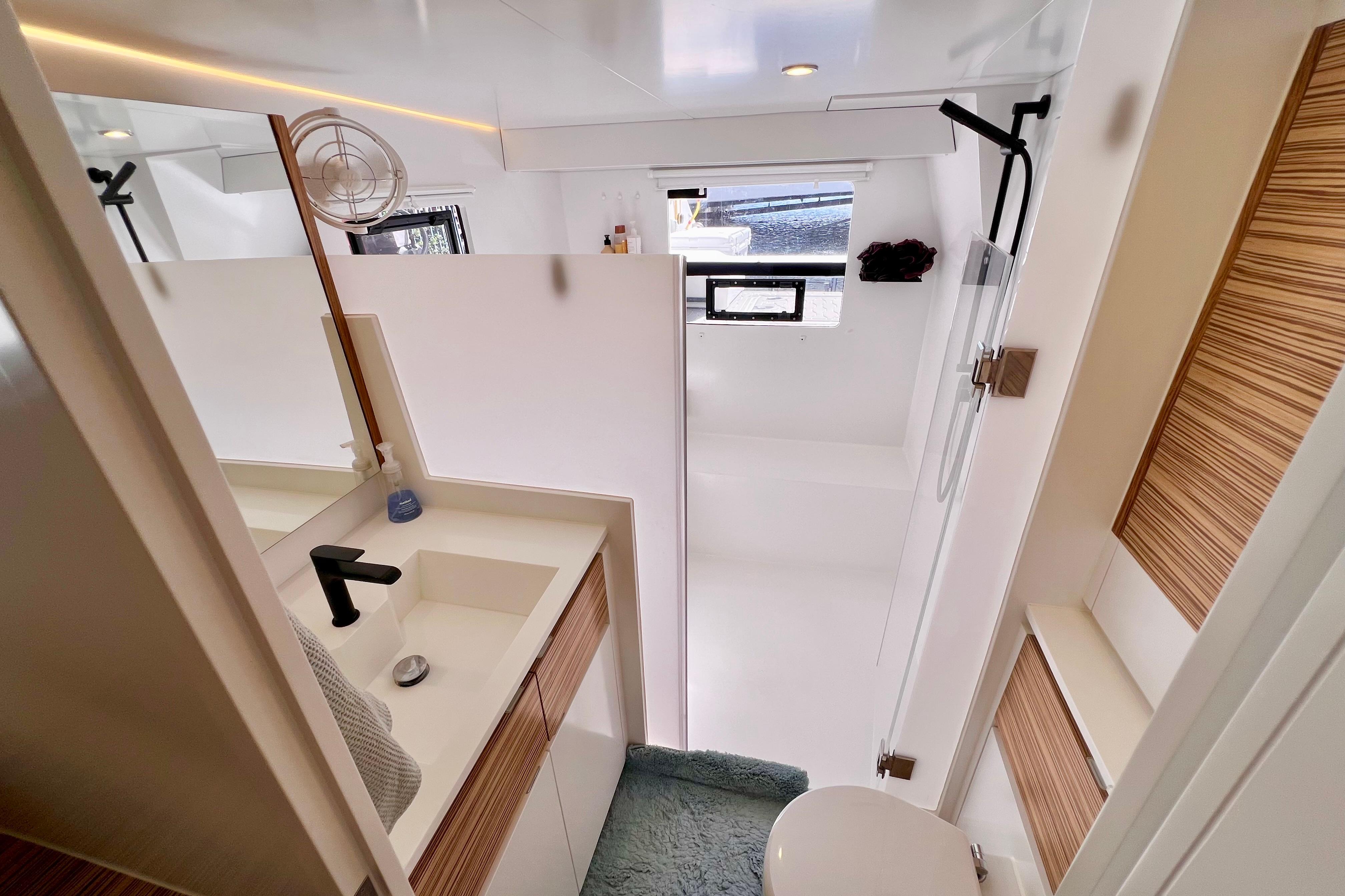 Balance Catamarans are well known for their stunning designs, exceptional build quality, and gorgeous fit and finish. They feature industry leading technology such as their signature VersaHelm steering system, Integrel charging technology, carbon fiber reinforced daggerboards, Ullman ASDL tri-radial laminate sails, state-of-the-art electronics suites, etc. The build process for these fantastic vessels incorporates Balances Carbon Cross design and construction techniques which utilizes E-glass fiberglass with significant Carbon Fiber reinforcement in the high load areas of the hulls and decks. Every Balance 482 is hand laminated and vacuum bagged with vinylester outer skin resin over closed cell foam cores. The end result is a lightweight, stiff, and robust vessel built for world voyaging.