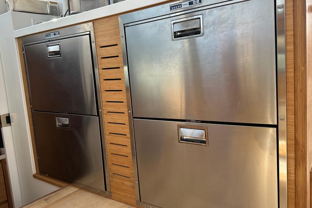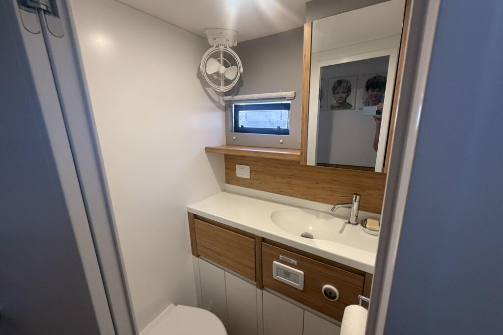 Balance Catamarans are well known for their stunning designs, exceptional build quality, and gorgeous fit and finish. They feature industry leading technology such as their signature VersaHelm steering system, 48V Victron house batteries, carbon fiber reinforced daggerboards, state-of-the-art electronics suites, etc. The build process for these fantastic vessels incorporates Balances Carbon Cross design and construction techniques which utilizes E-glass fiberglass with significant Carbon Fiber reinforcement in the high load areas of the hulls and decks. Every Balance 482 is hand laminated and vacuum bagged with vinylester outer skin resin over a closed-cell foam core. The end result is a lightweight, stiff, and robust vessel built for world voyaging.