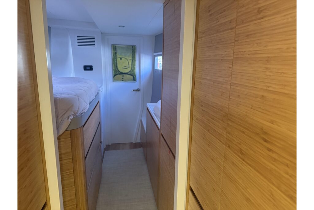 GTFO is the idealbalanceof both comfort at anchor and performance underway. With her 3-Cabin Owner Version configuration, the Balance 482 easily accommodates six people in 3 Queen-sized berths. The 482 sports 610 of headroom throughout, boasts a large U-shaped galley, and features the gorgeous real Eco Bamboo Wood hand-crafted cabinetry.