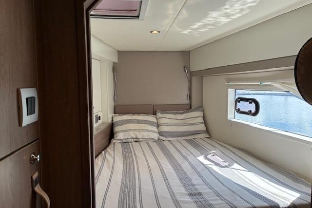 Starboard forepeak layout (mattress, blackout curtain, and porthole)