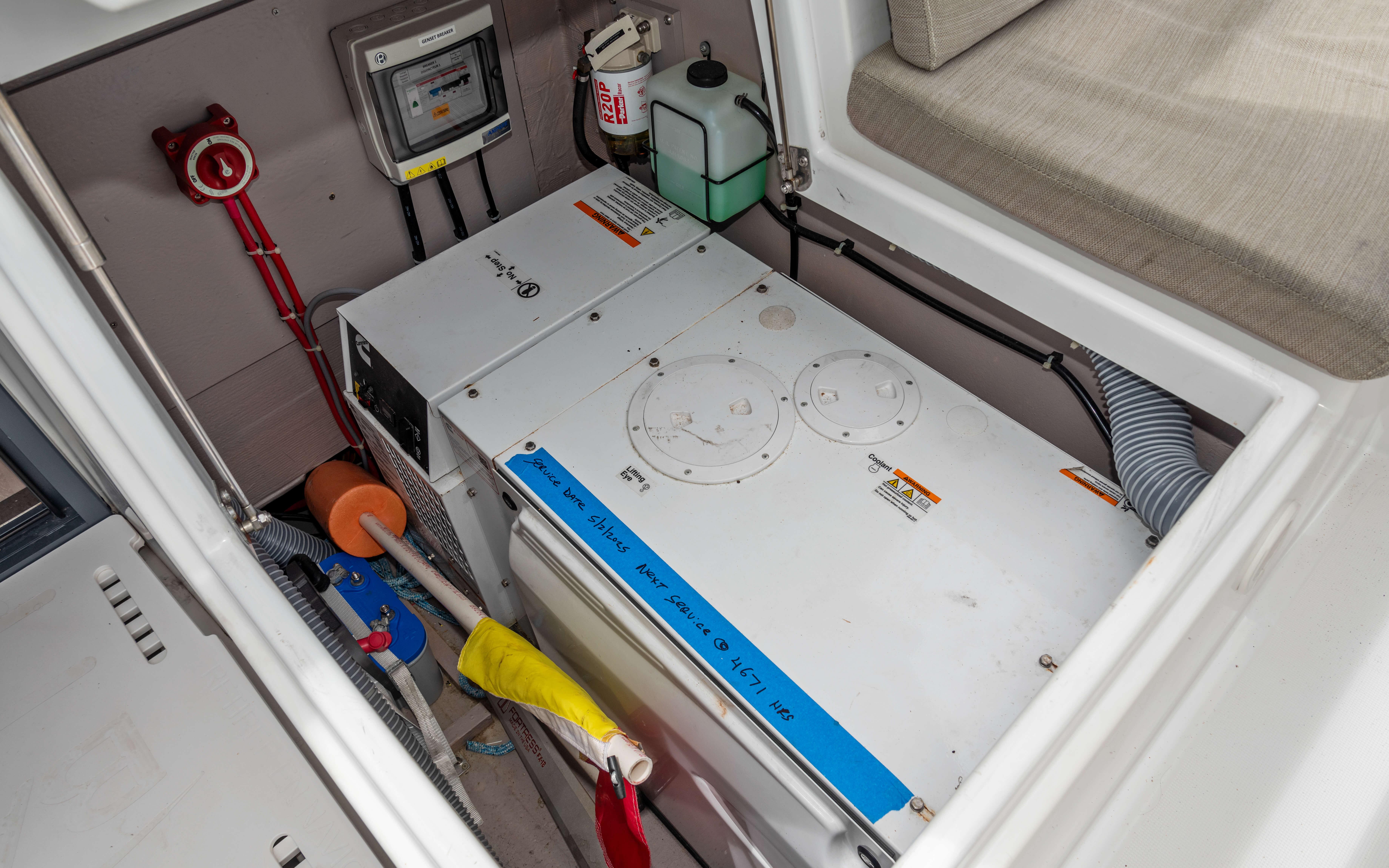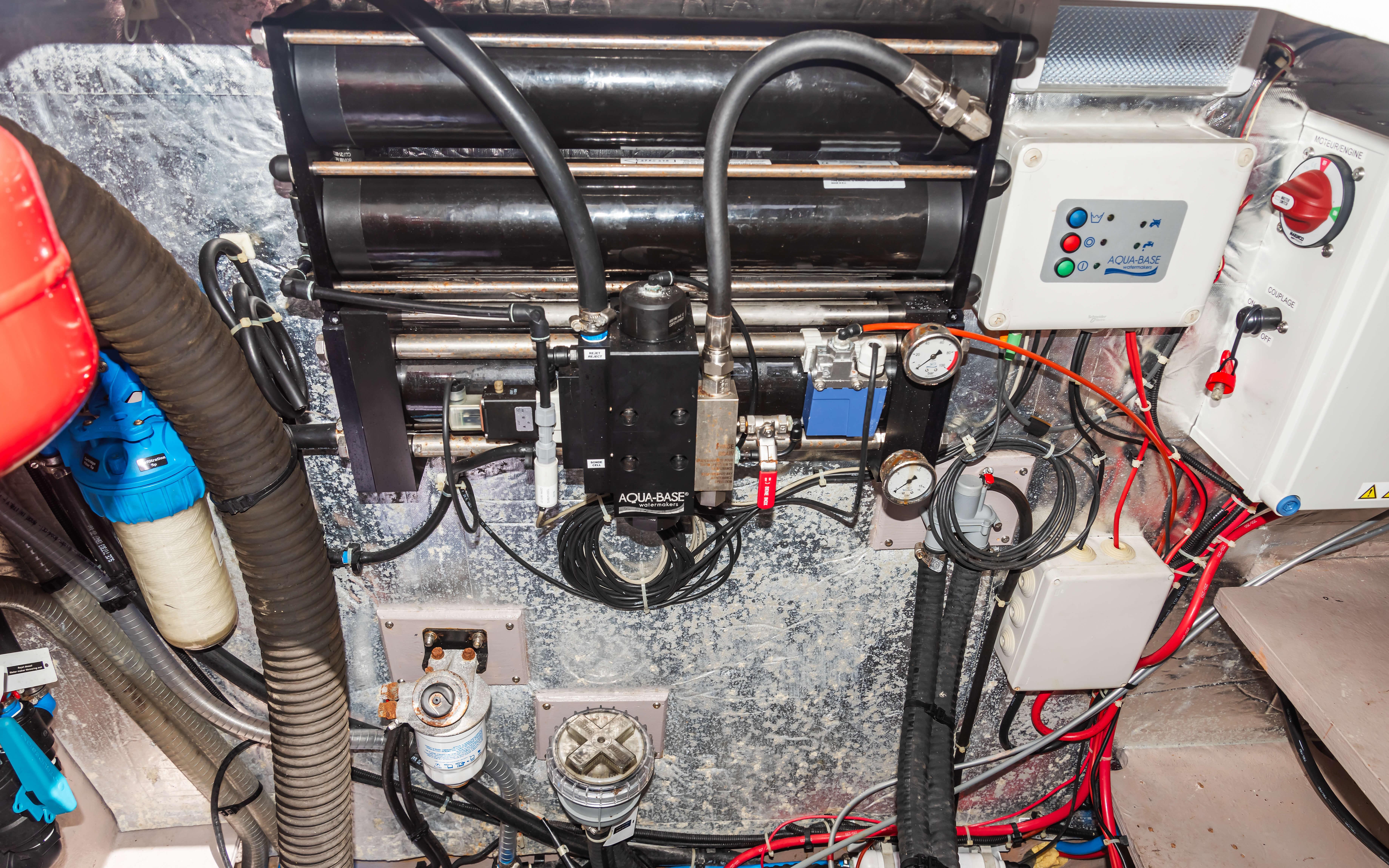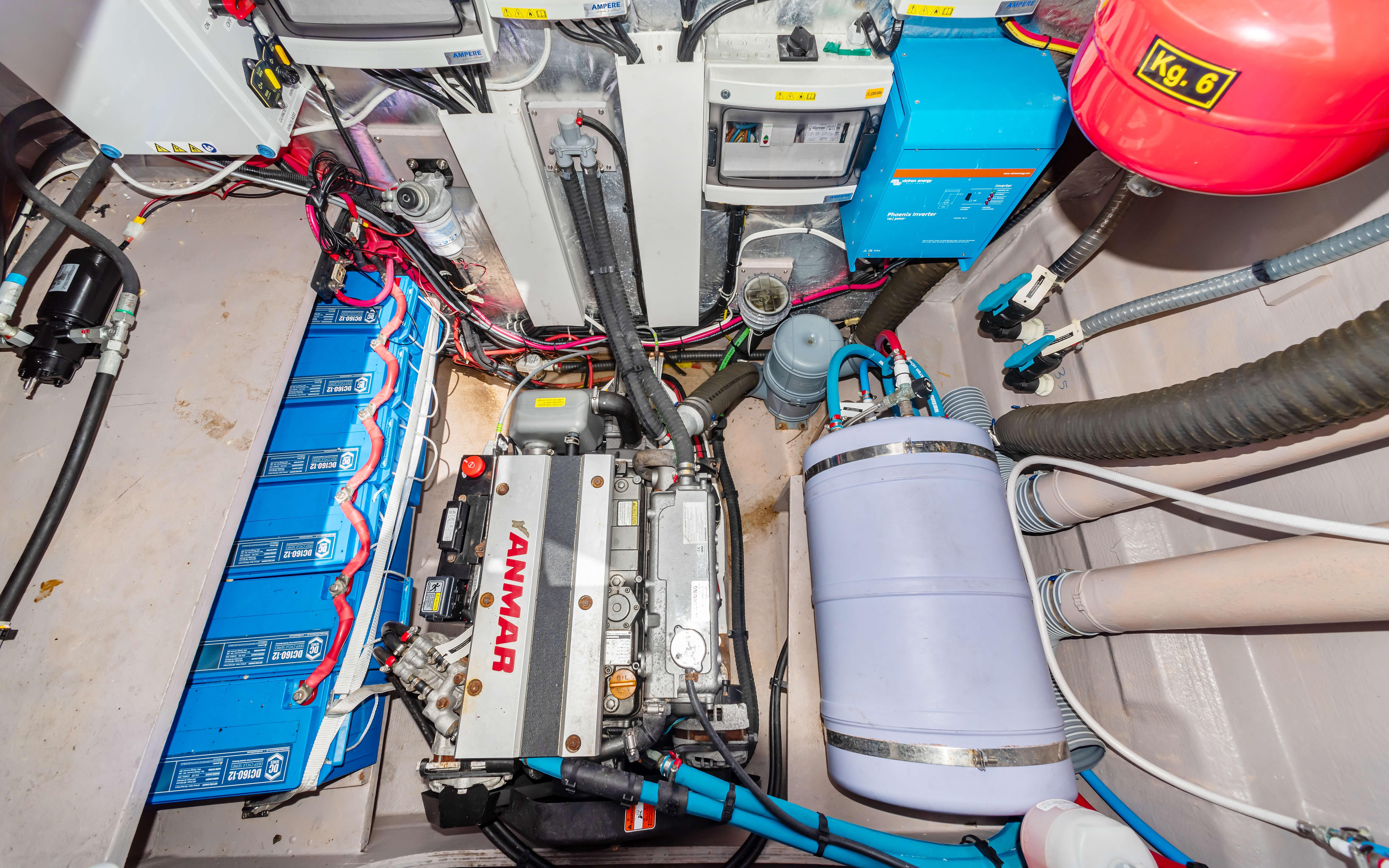Gas installation under the plancha in the aft of the boat, with area for spare gas cylinder. There are 2 tanks onboard
