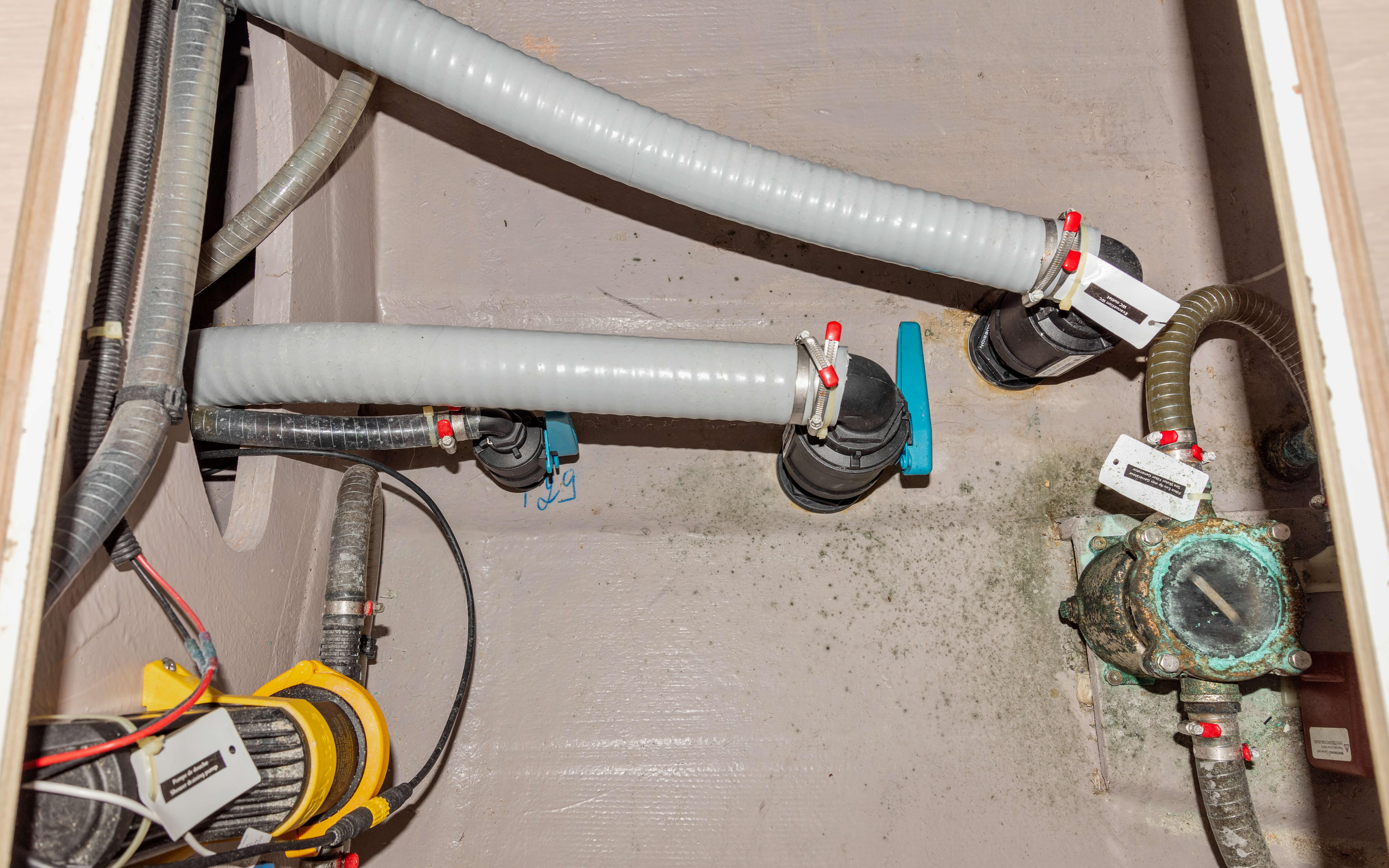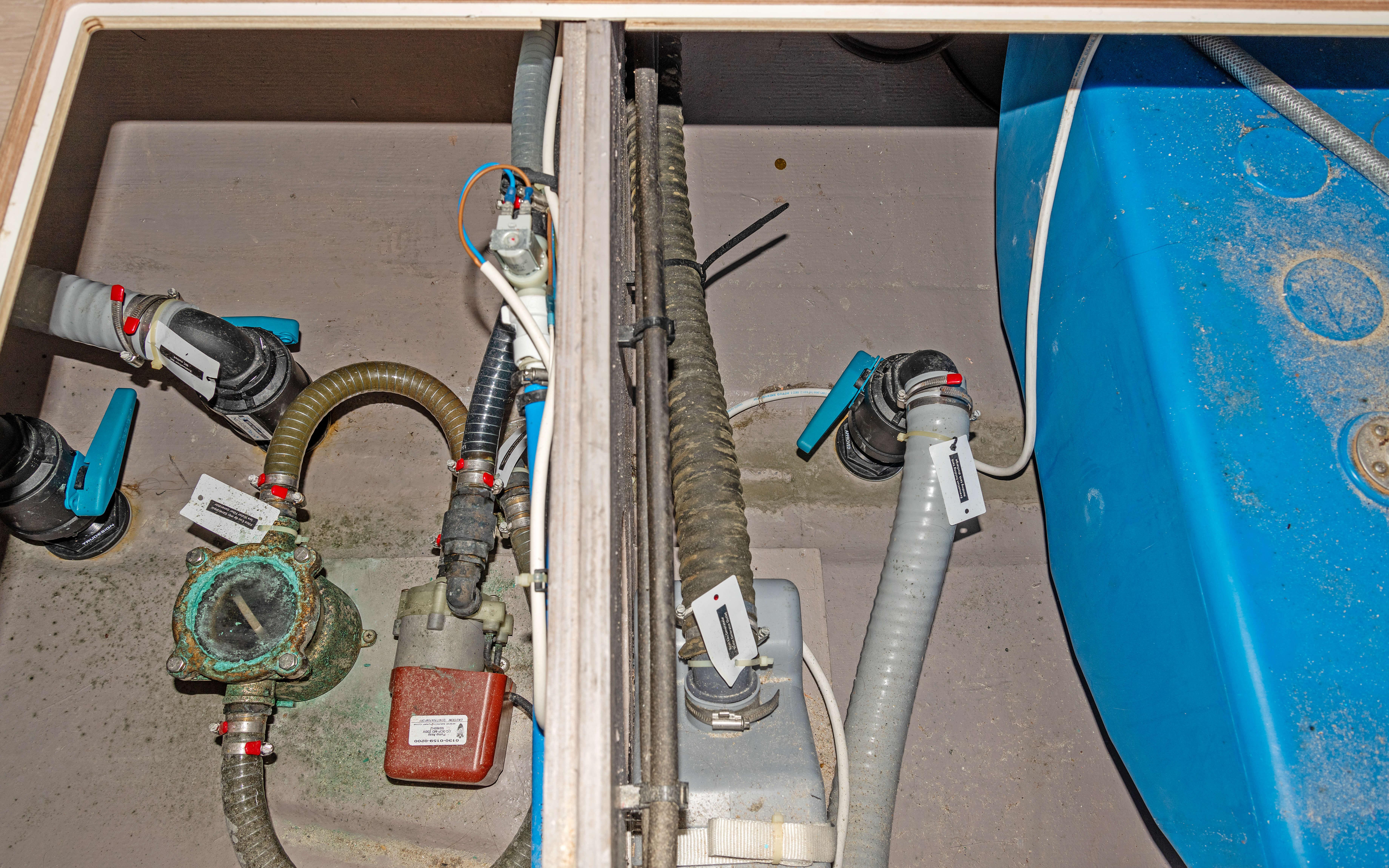 Port tank – 600L / Starboard – 400L (Note- see freshwater systems description: this is offset with the water tanks)