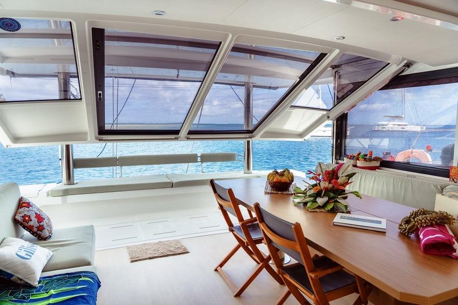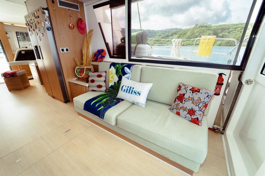 Despite her comfort, Giliss is a capable sailing yacht — she proudly won the catamaran category in all stages of the Rallye des Îles du Soleil.