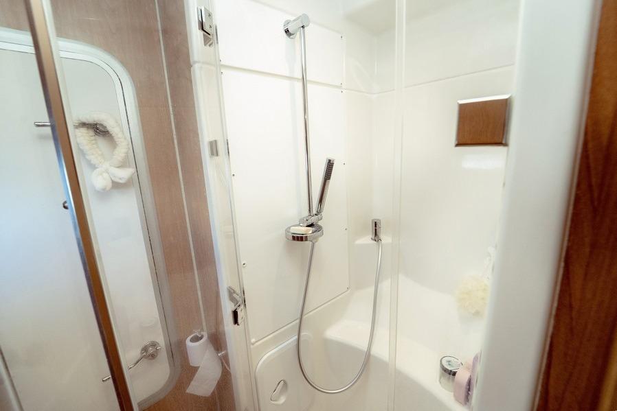Giliss is equipped for smooth, confident handling in all conditions. Twin upgraded 80 HP engines with 125 A alternators provide reliable power, complemented by electronic engine controls and a Dockmate Twist joystick docking system that work seamlessly with the bow thruster for effortless maneuvering in tight spaces.