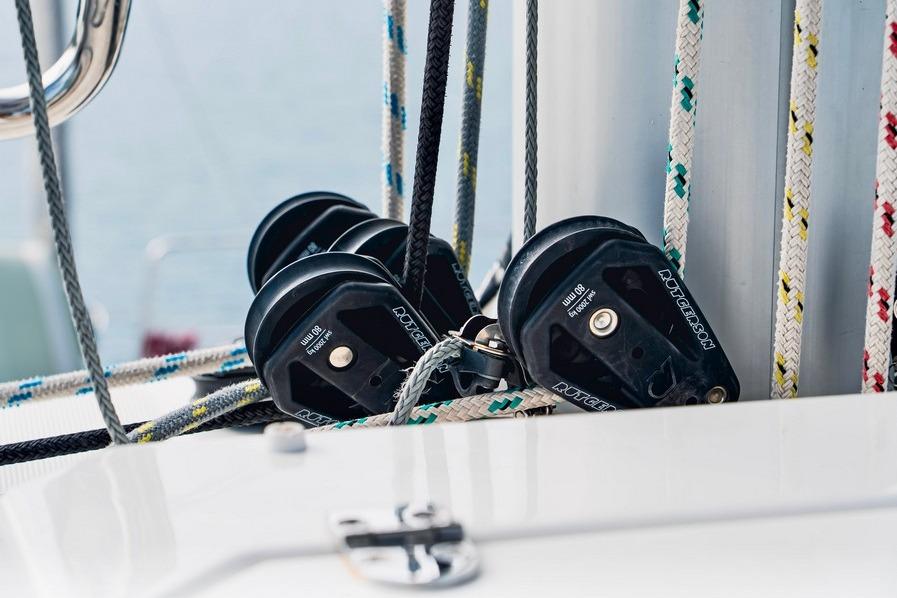 All halyards are top-quality Gottifredi Maffioli, ensuring smooth handling and durability. Electric winches and a Wichard boom brake further enhance ease of sail management and safety.