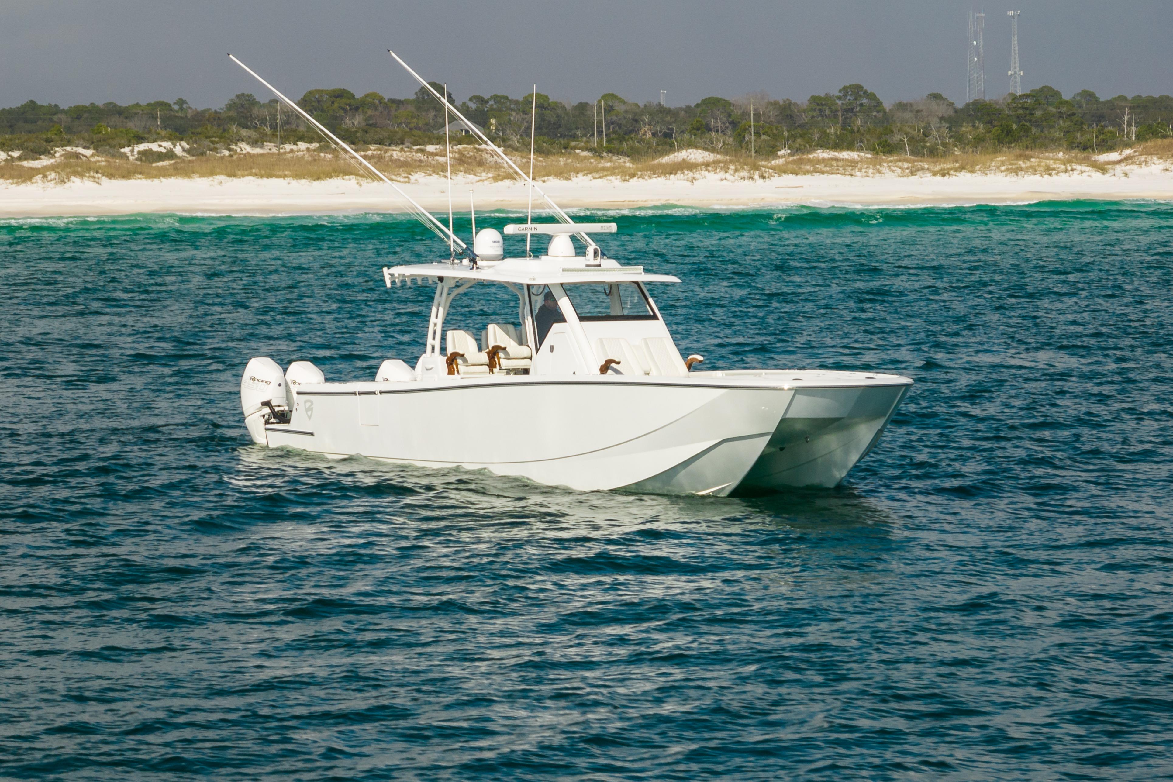 This 2021 Barker 40HPC is a true one-of-a-kind, optioned like a sportfisher yet delivering the speed and efficiency only a high-performance catamaran can provide. Powered by quad Mercury Racing 450Rs, she combines blistering performance with the versatility and comfort serious anglers and families demand.