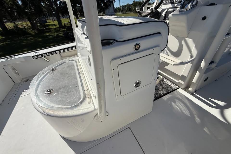 • Leaning post with 65-gal baitwell, tackle storage, and washdownFishing Setup