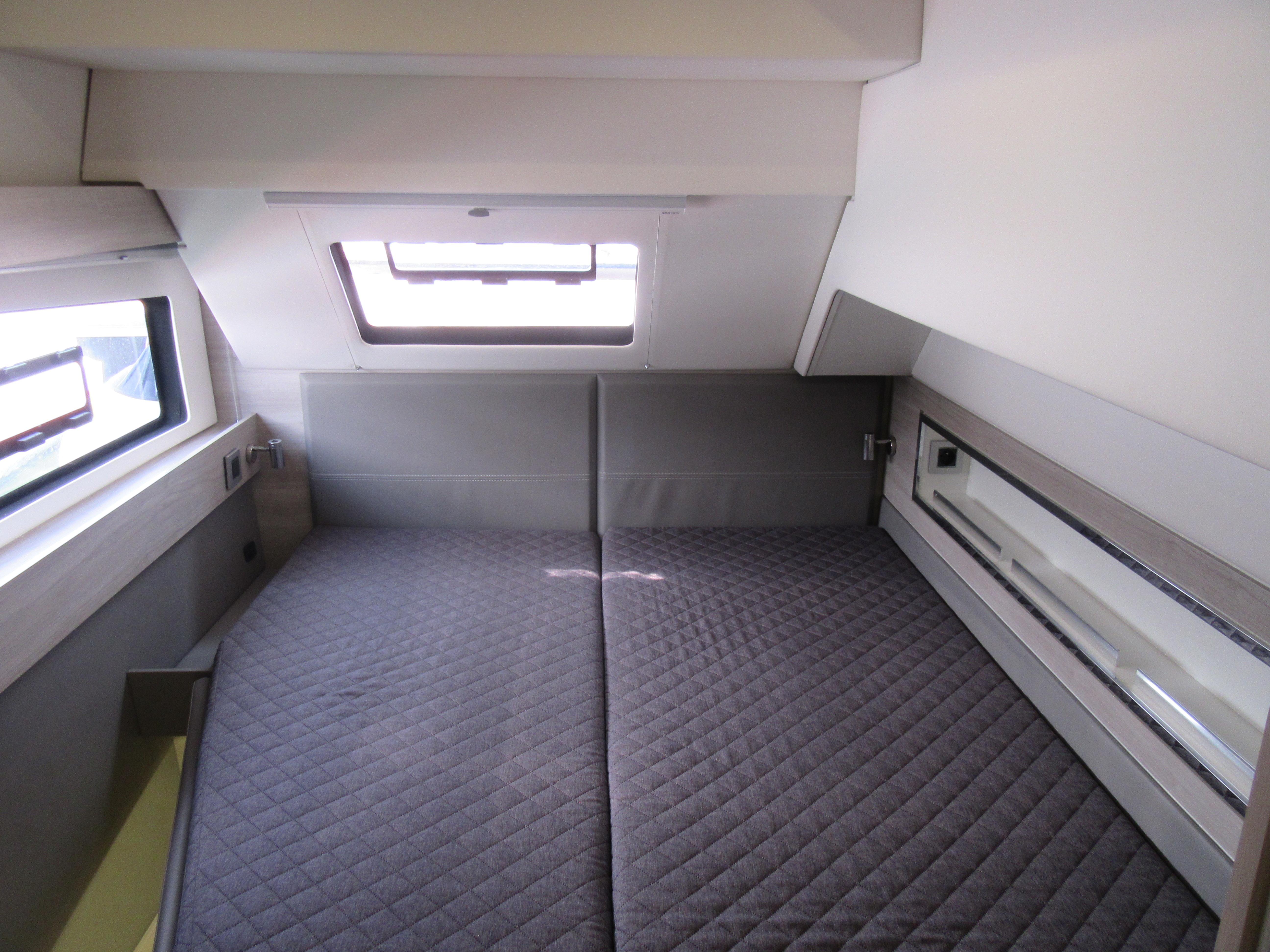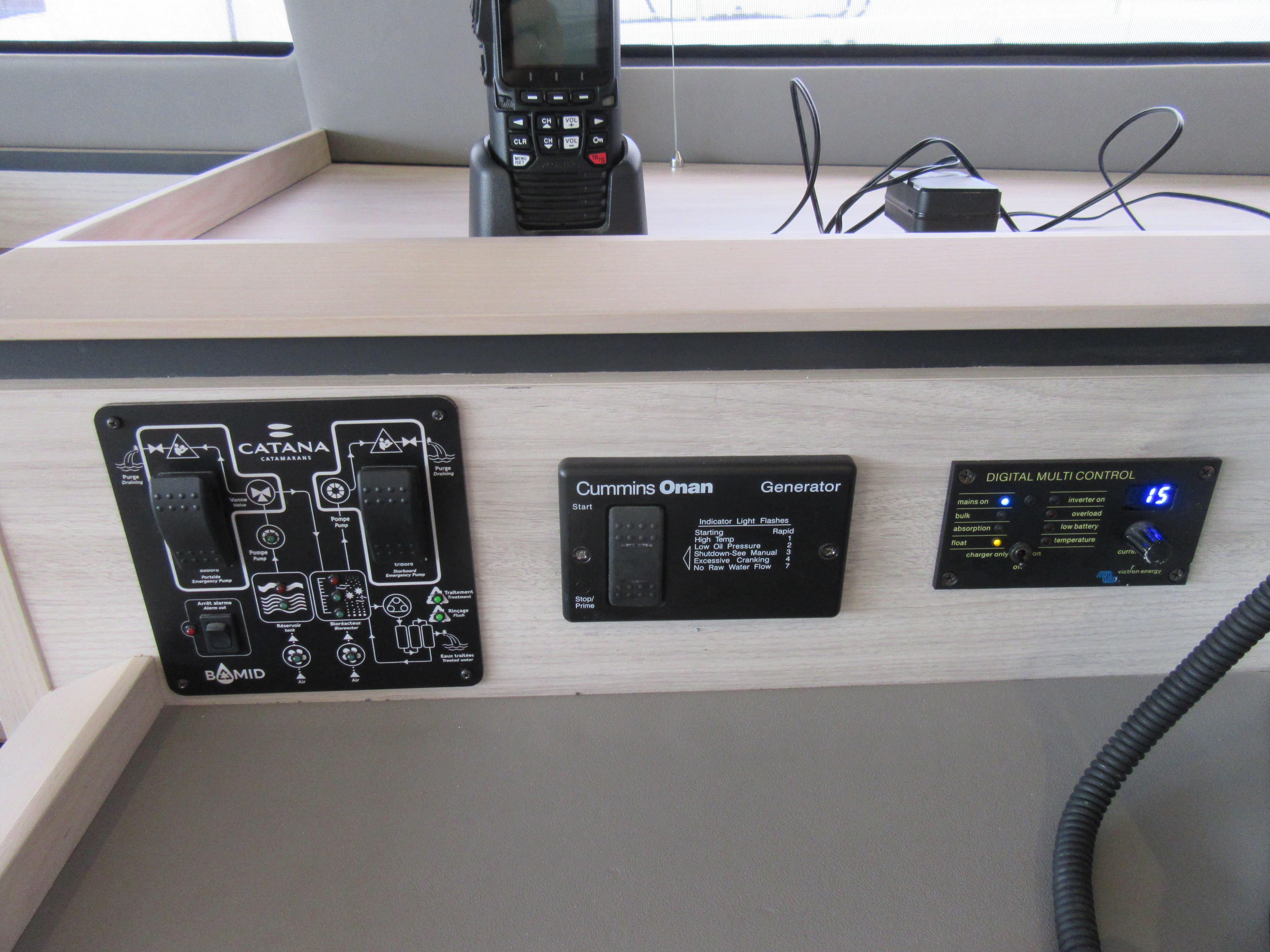 Catana 50 OC HEBY is hull #5 of this distinctive, new model. This 3 cabin/2 head layout is a 2023 model and shows like new in every department. The engines have 350 hours on them, the interior is immaculate, the sails and running rigging are crisp. The choice of options is well considered for reliable, long range voyaging. Upgraded 80 HP Yanmar engines for optimal power push Max Prop feathering props for improved maneuverability in port. The sail wardrobe includes genoa and gennaker with a self-tacking Solent track option installed. An upgraded 17.5 KVA generator keeps all amenities humming with the assistance of a Lithium house battery pack: full air-conditioning to the 3 cabins, household fridge-freezer with an expanded freezer capacity, Spectra water-maker to name the highlights. A large solar array and large engine alternators provide alternative sources of onboard power.