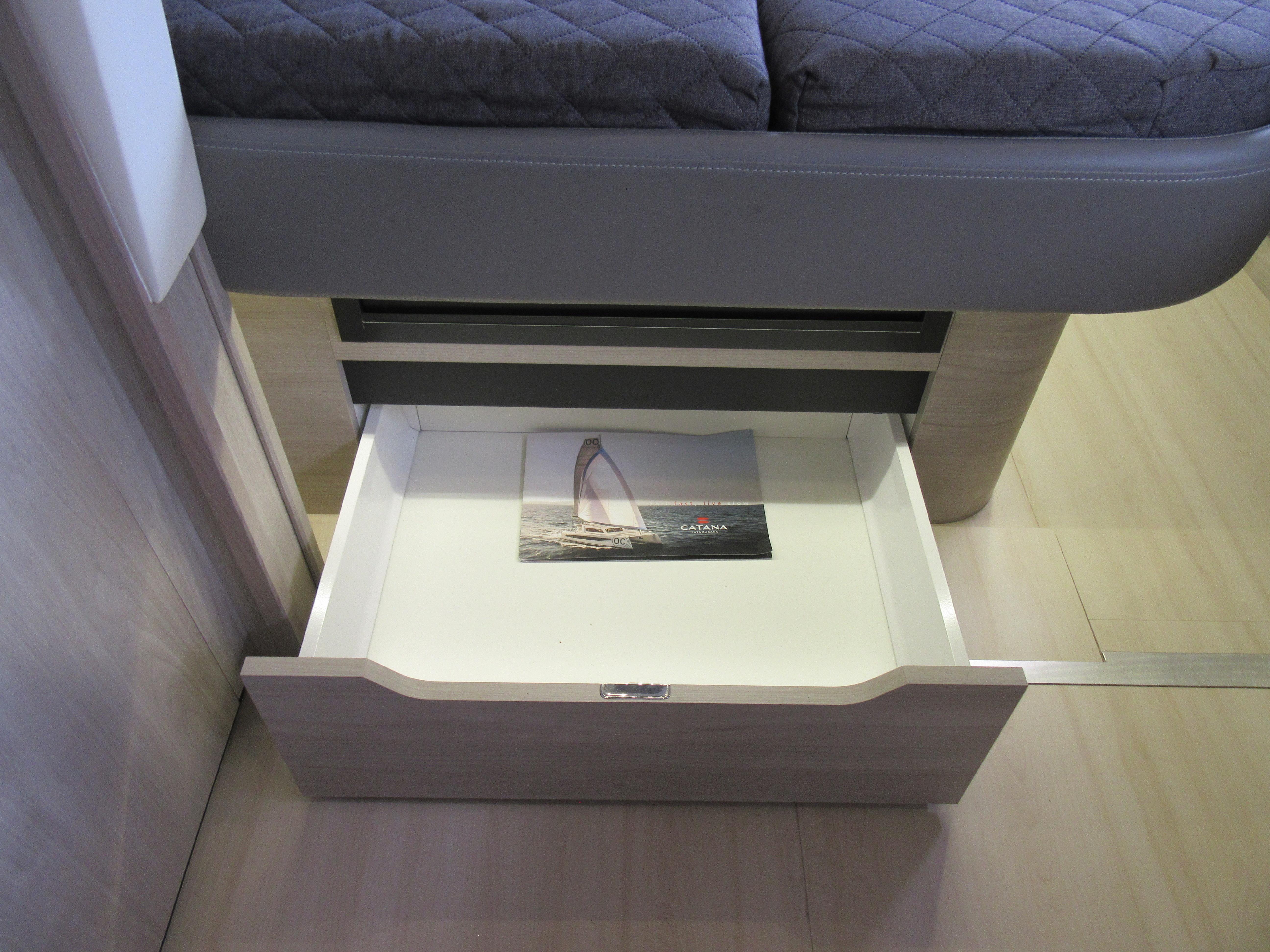 Over the course of four decades, the Catana shipyard has created and developed a long line of very successful and proven blue water cats that emphasize performance and dynamic comfort (i.e under way). With this latest model, the Catana 50 Ocean Class, the yard innovates like never before to push the boundaries of comfort and utility to a new level. The Catana 50 OC offers more interior volume, headroom, payload capacity, galley counter space, engine room space, than any of its predecessors. It boasts superb ergonomics on deck and vastly improved sail-handling with a raised helm that brings all lines to a large cockpit. All of this while conserving its trademark high bridge-deck clearance, efficient dagger-boards, outsized freeboard and inverted asymmetric bows. With a powerful 90 sq meter mainsail and overlapping genoa, the Catana 50 OC is all the thoroughbred that its predecessors were. No compromise has been made to offshore performance, reliability and safety.