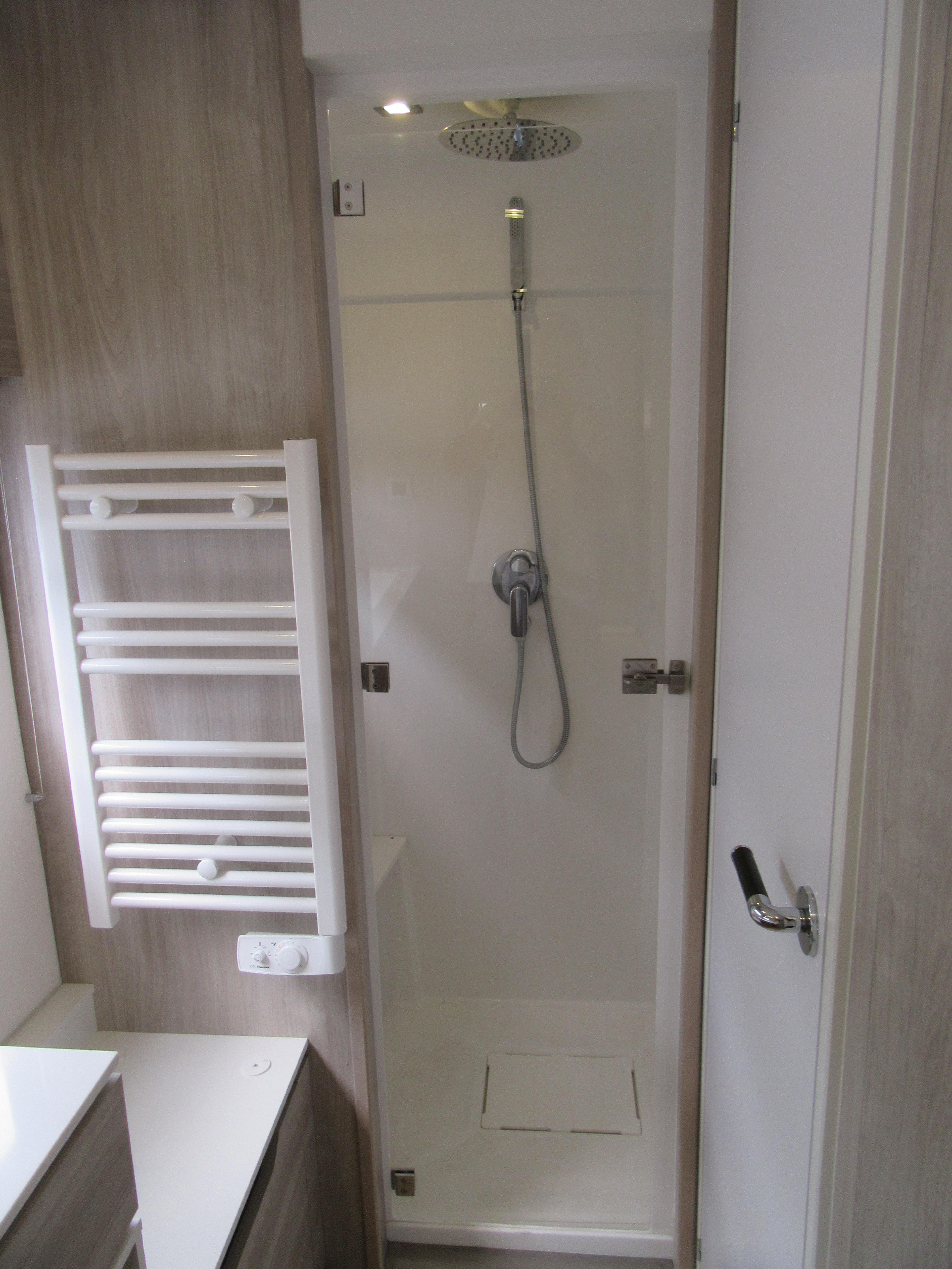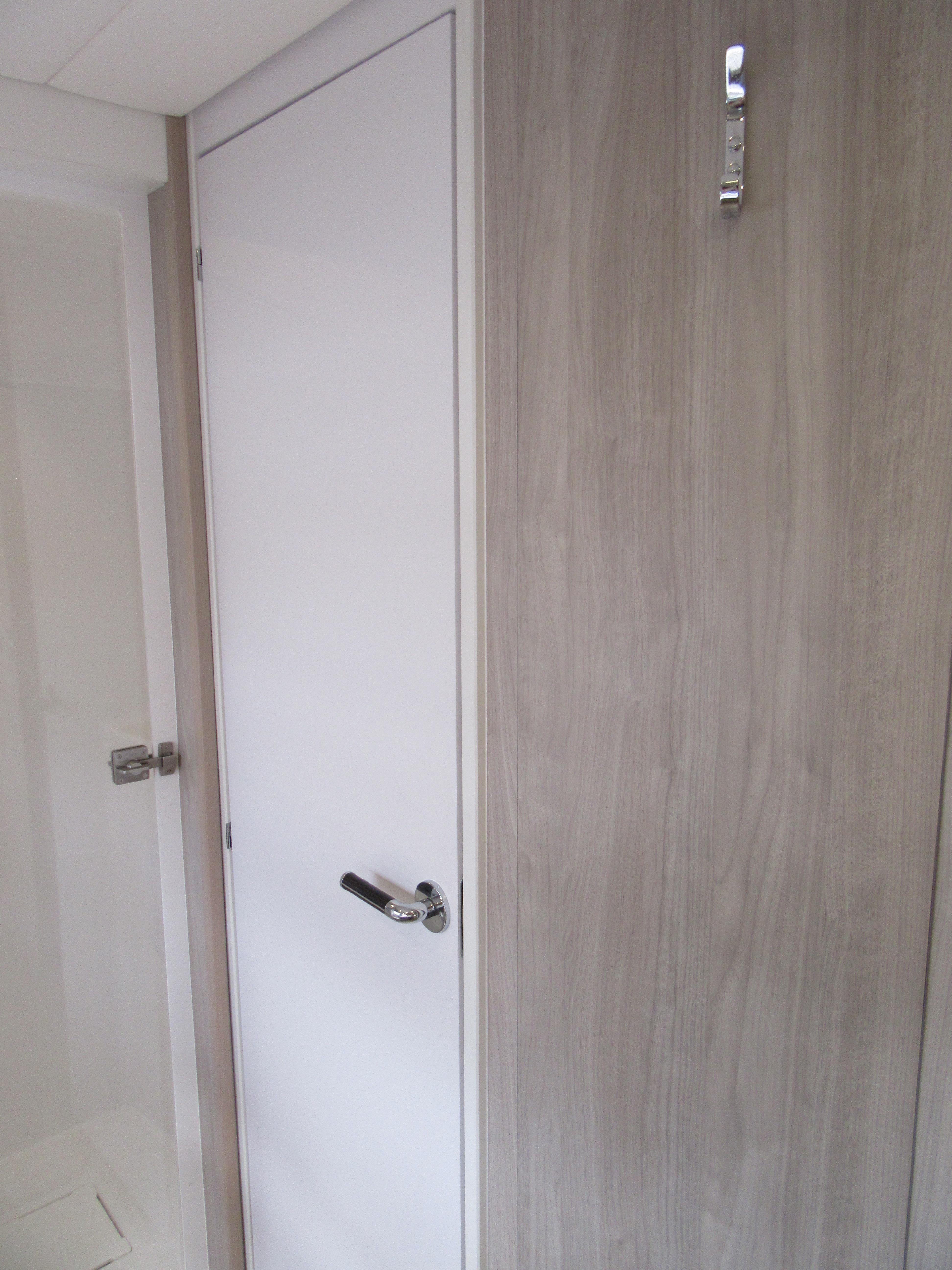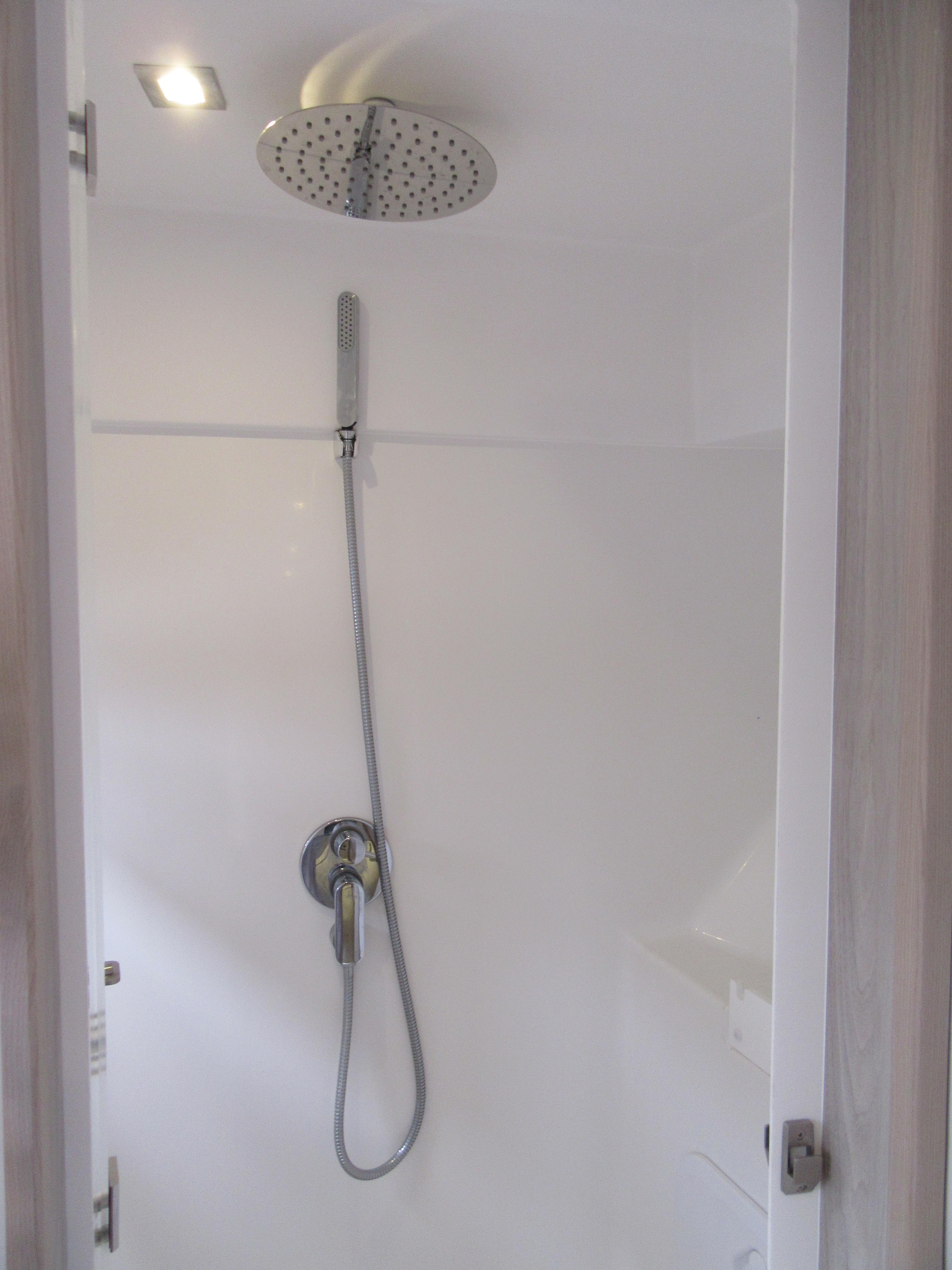 – 1 Large separate shower with satin plexiglass screen and ventilation via 1 hull porthole