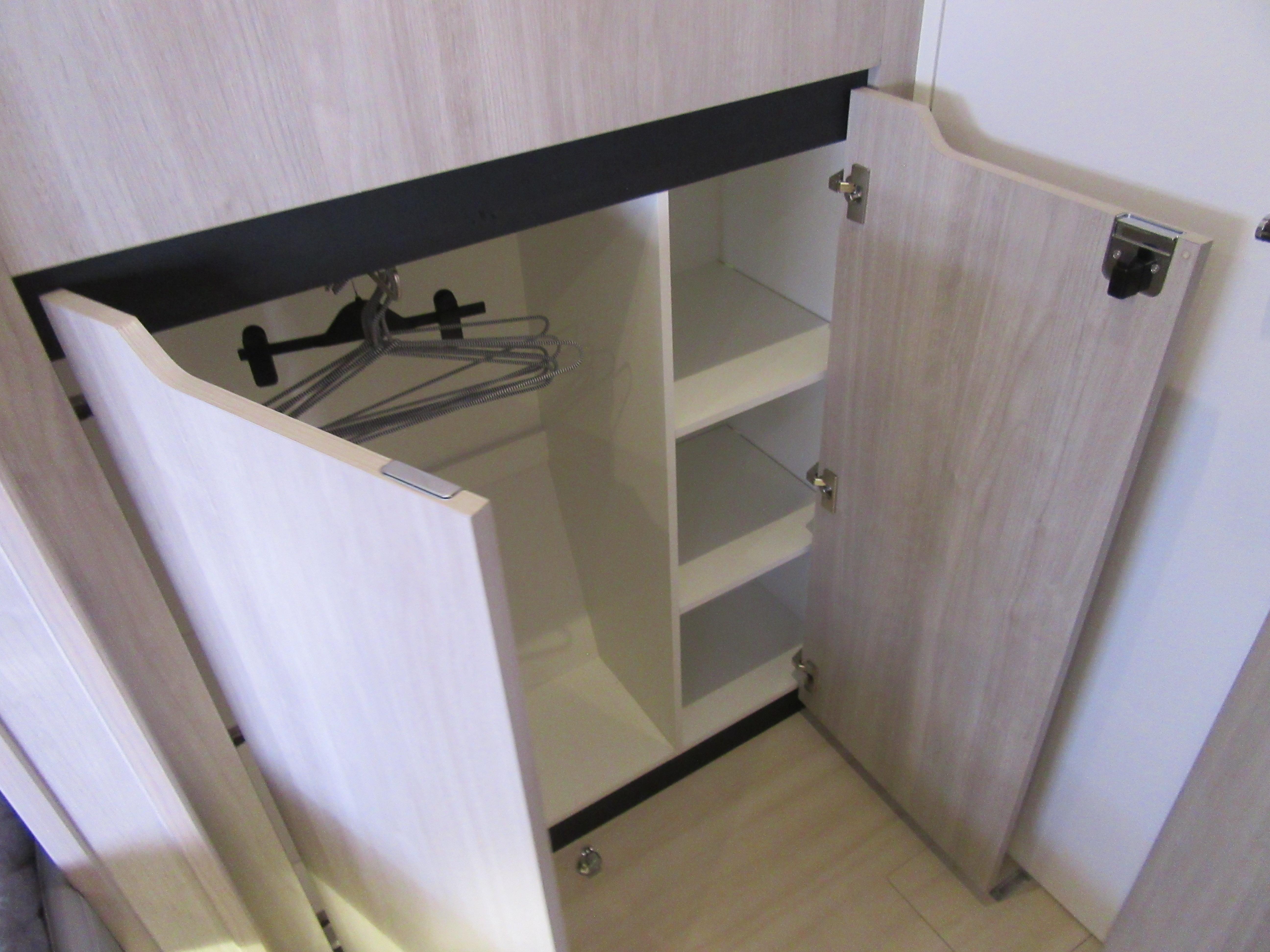 – Bathroom accessories (1 coat hook, toiletries storage)
