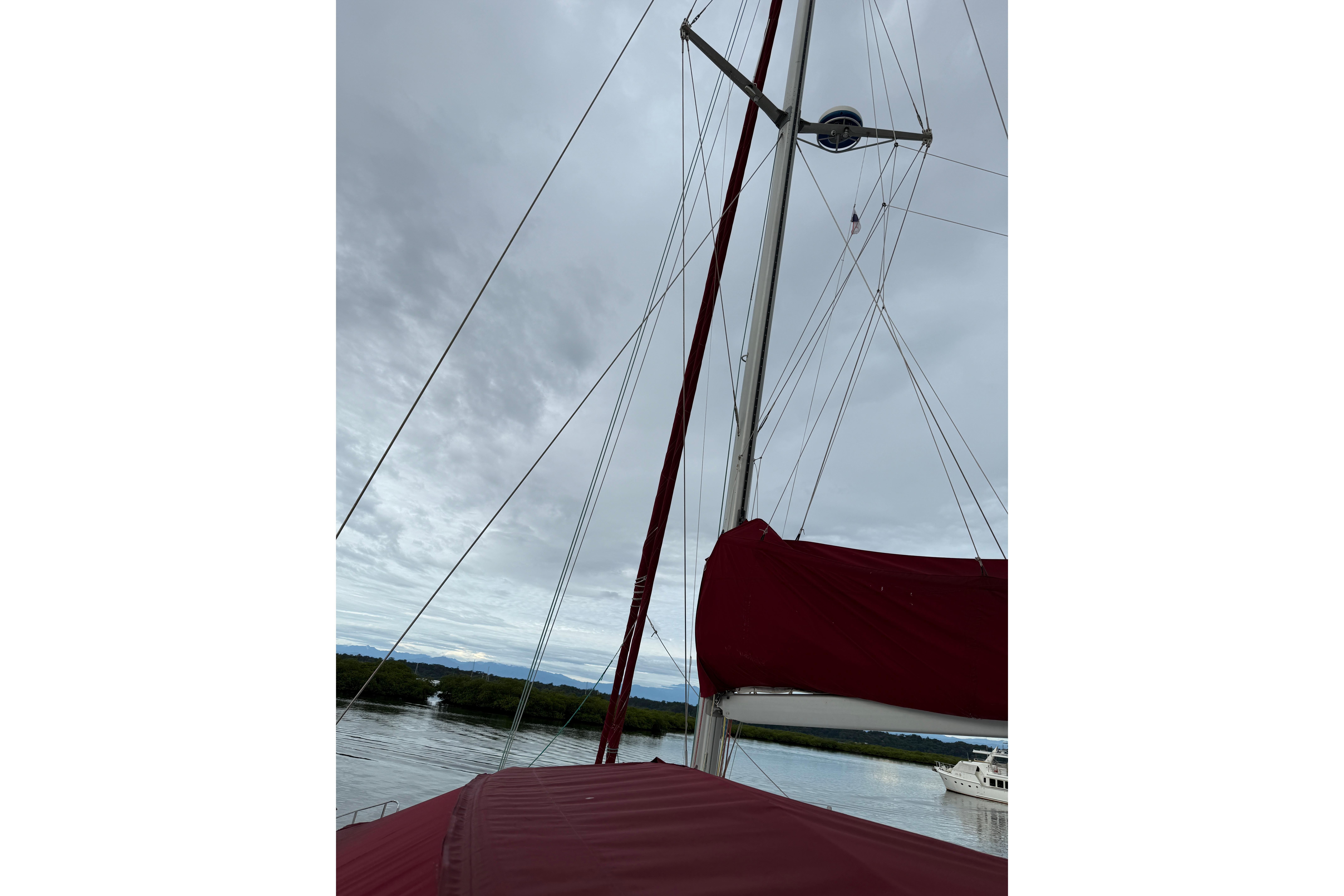 New Ullman Sail Inventory (2024): This includes a new Mainsail (1076 sq ft), a new Reacher (968 sq ft on an electric furler), and a new Jib (452 sq ft on a 2nd electric furler). An Asymmetrical Spinnaker (1722 sq ft) provides downwind speed.