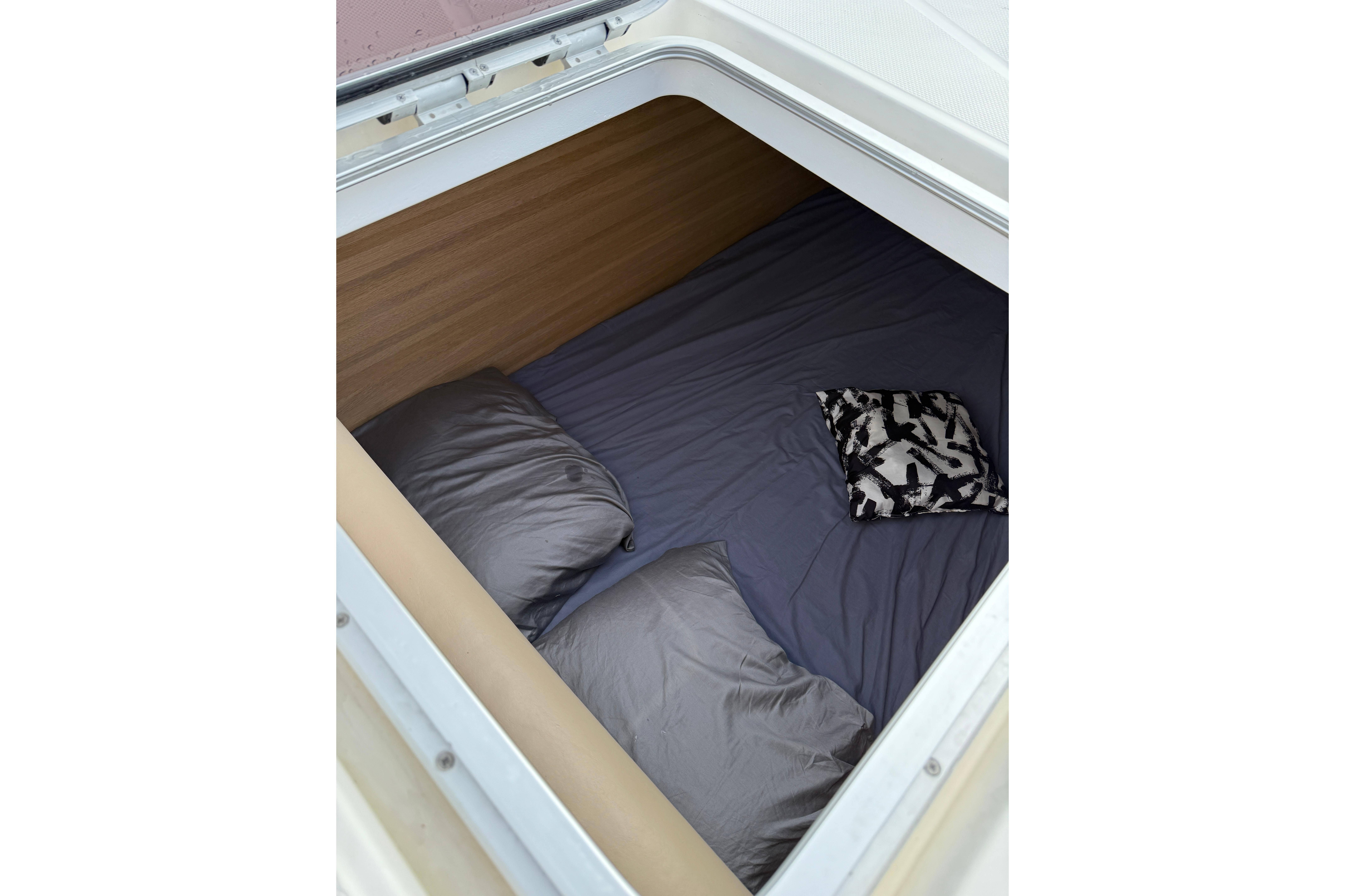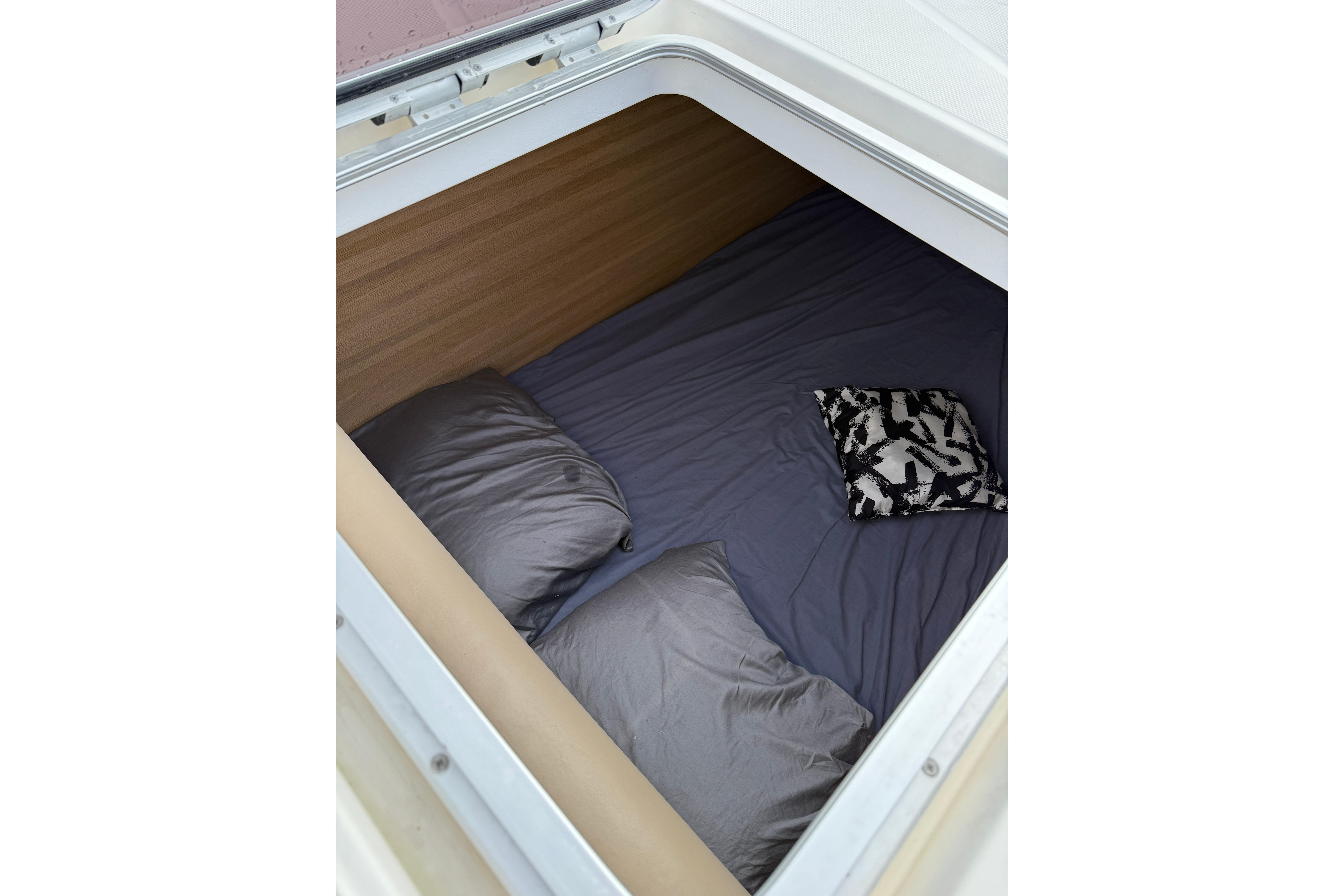 Covers/Canvas: Extended sunshade for cockpit (new 2017) , Cockpit cushions (new 2019) , Sliding cloth bimini above helm chair (new 2018)