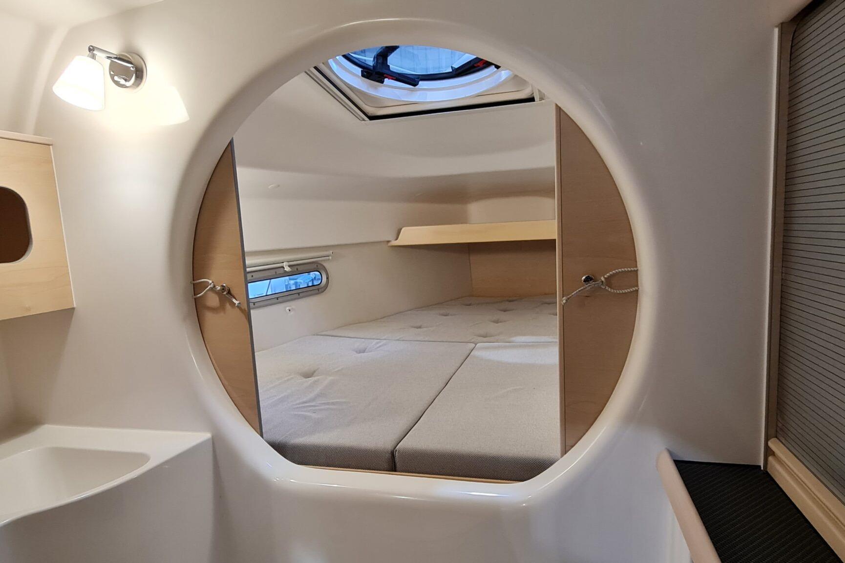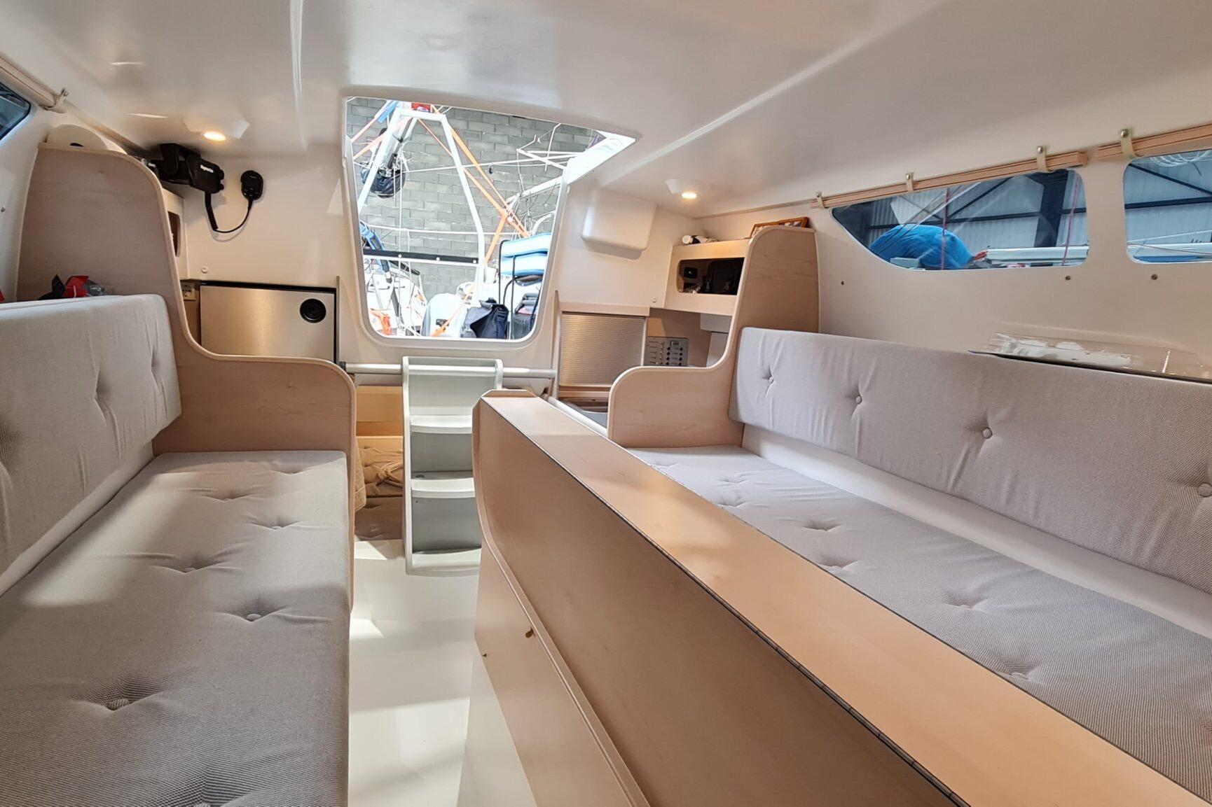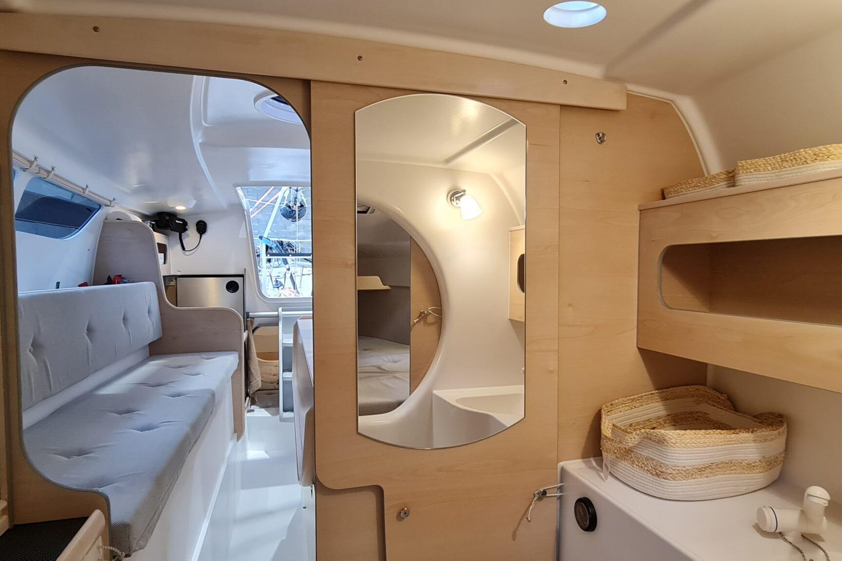 Ce Dragonfly allie le confort ainsi que la performance pour vos sorties journalières comme vos croisières plus longues. La performance est assurée par son gréement de 13m60 avec ses voiles en EPEX Elvström (voiles à membre avec fibres black Technora). Le tout sublimé par ses flotteurs « wave piercing » maximisant le volume et le passage à la mer.