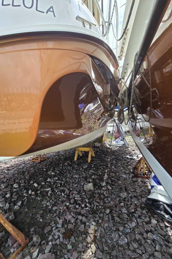 Black and white bottom paint application