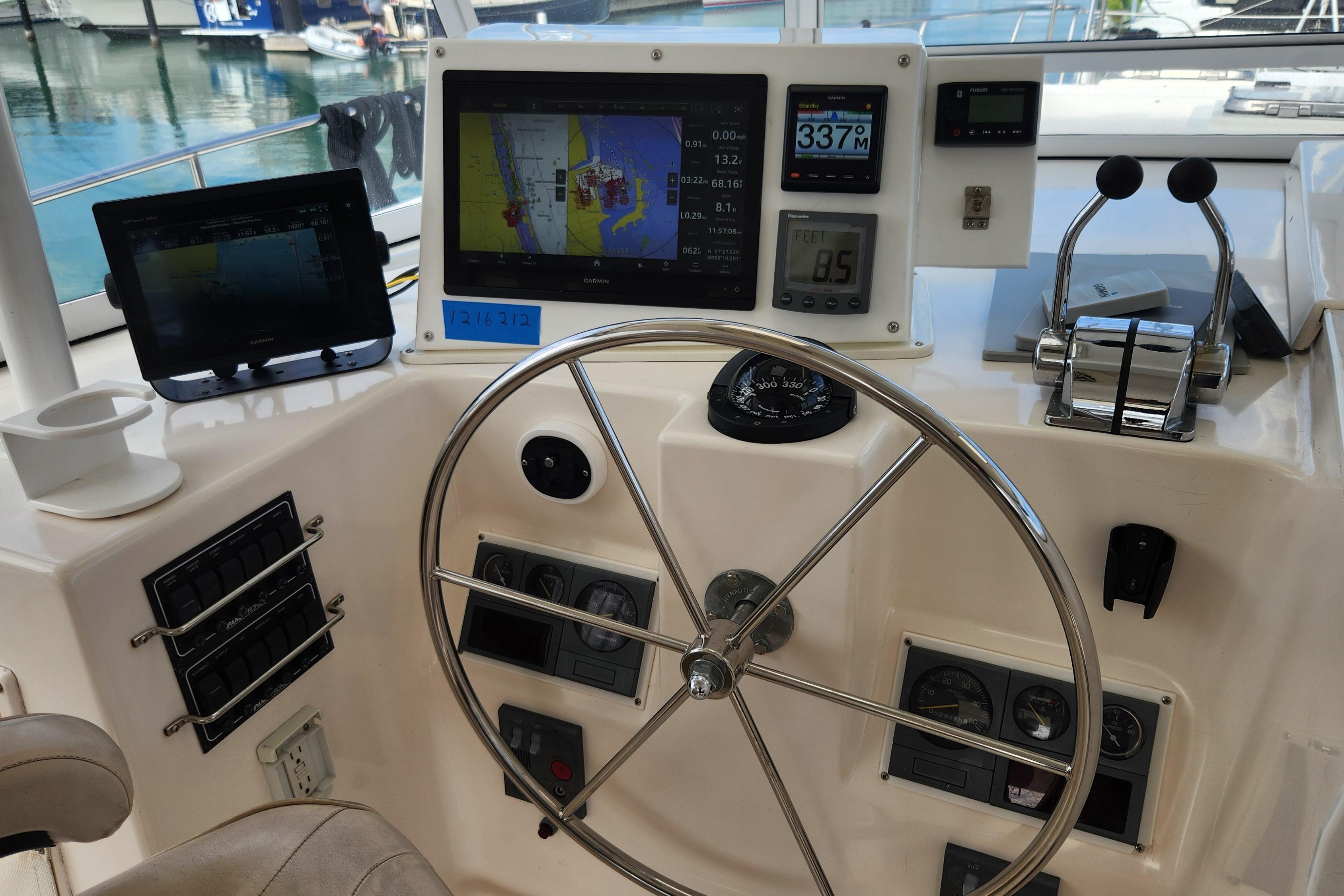 Some highlights for this great PowerCat.... New AIS Transponder, New Radar, New Windlass, New Stainless Elbow and Injectors on Port Engine.   Being Hauled out Jan 29 for new Bottom Paint and Waxing of lower hull.