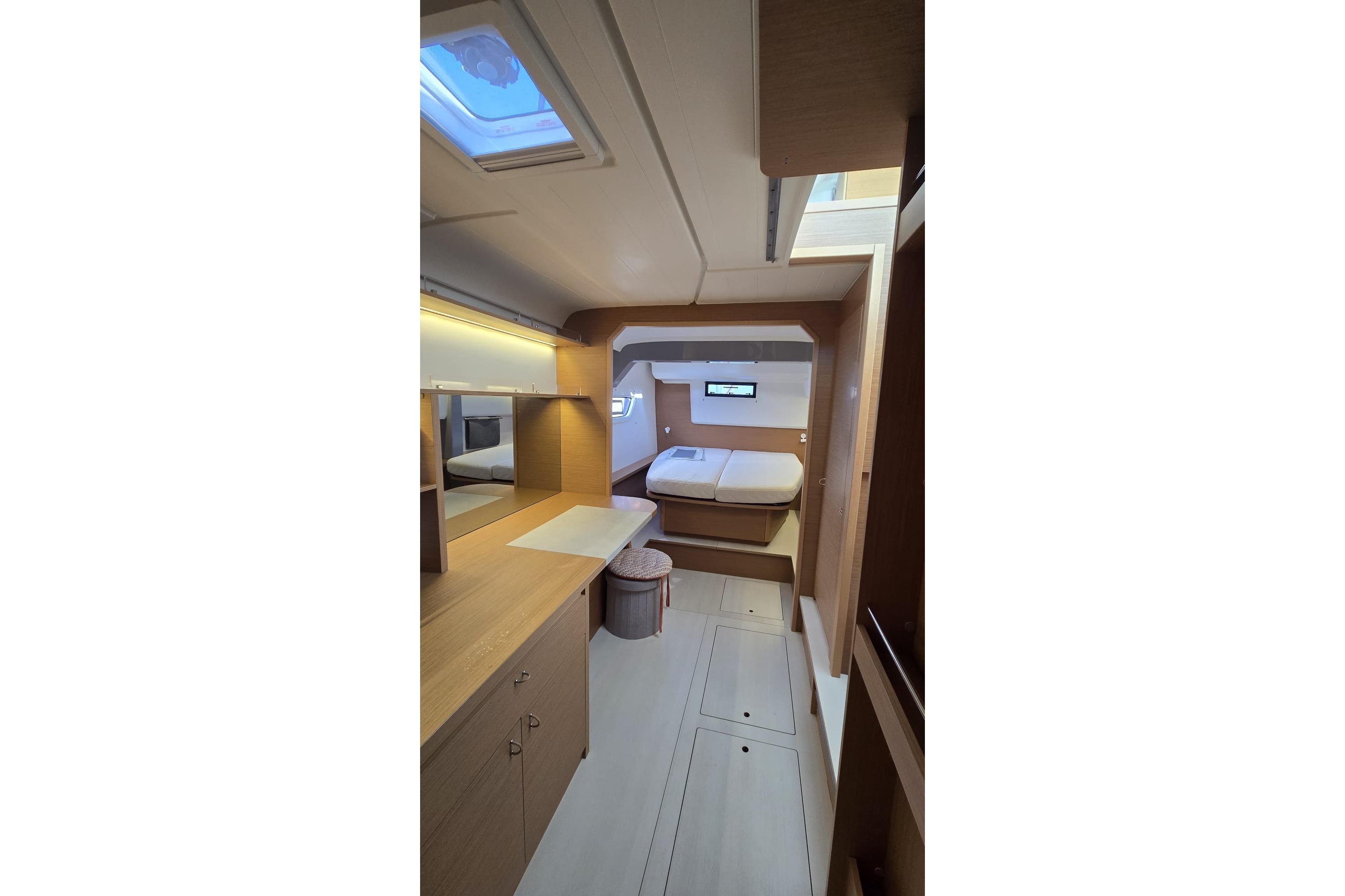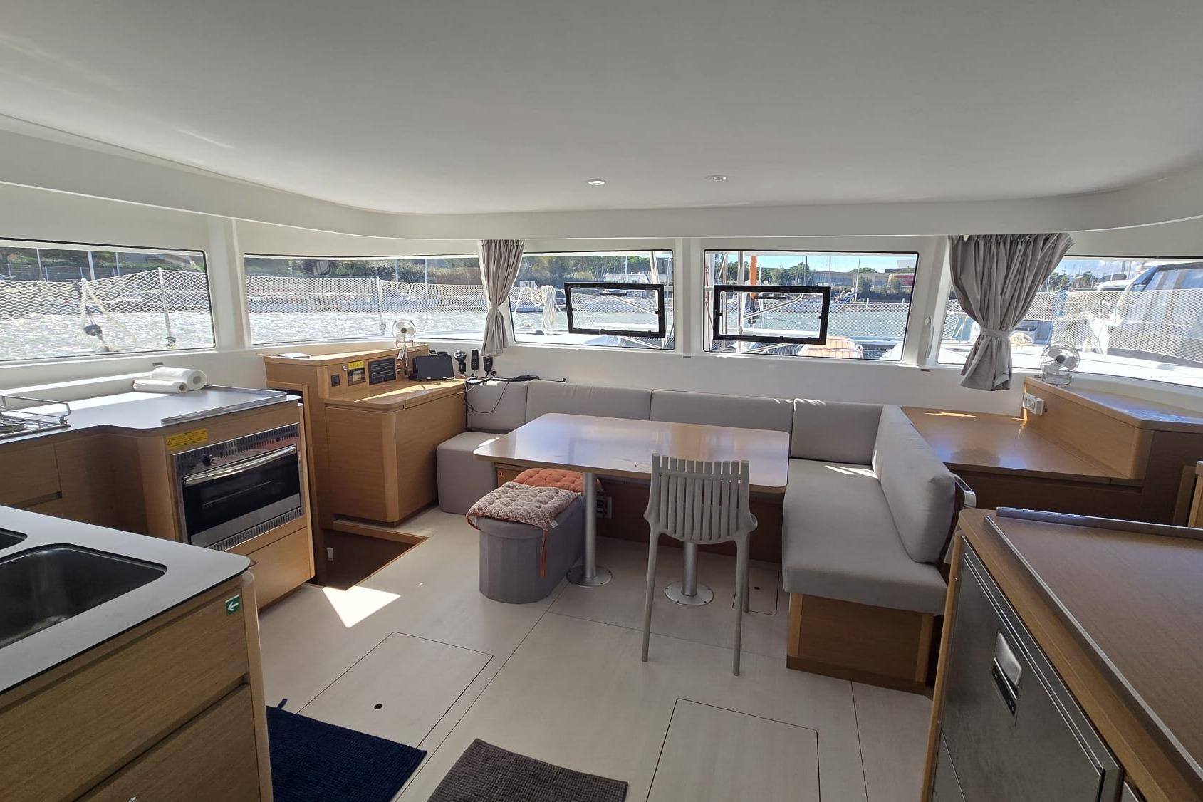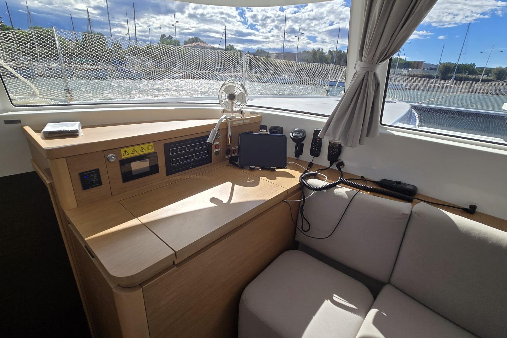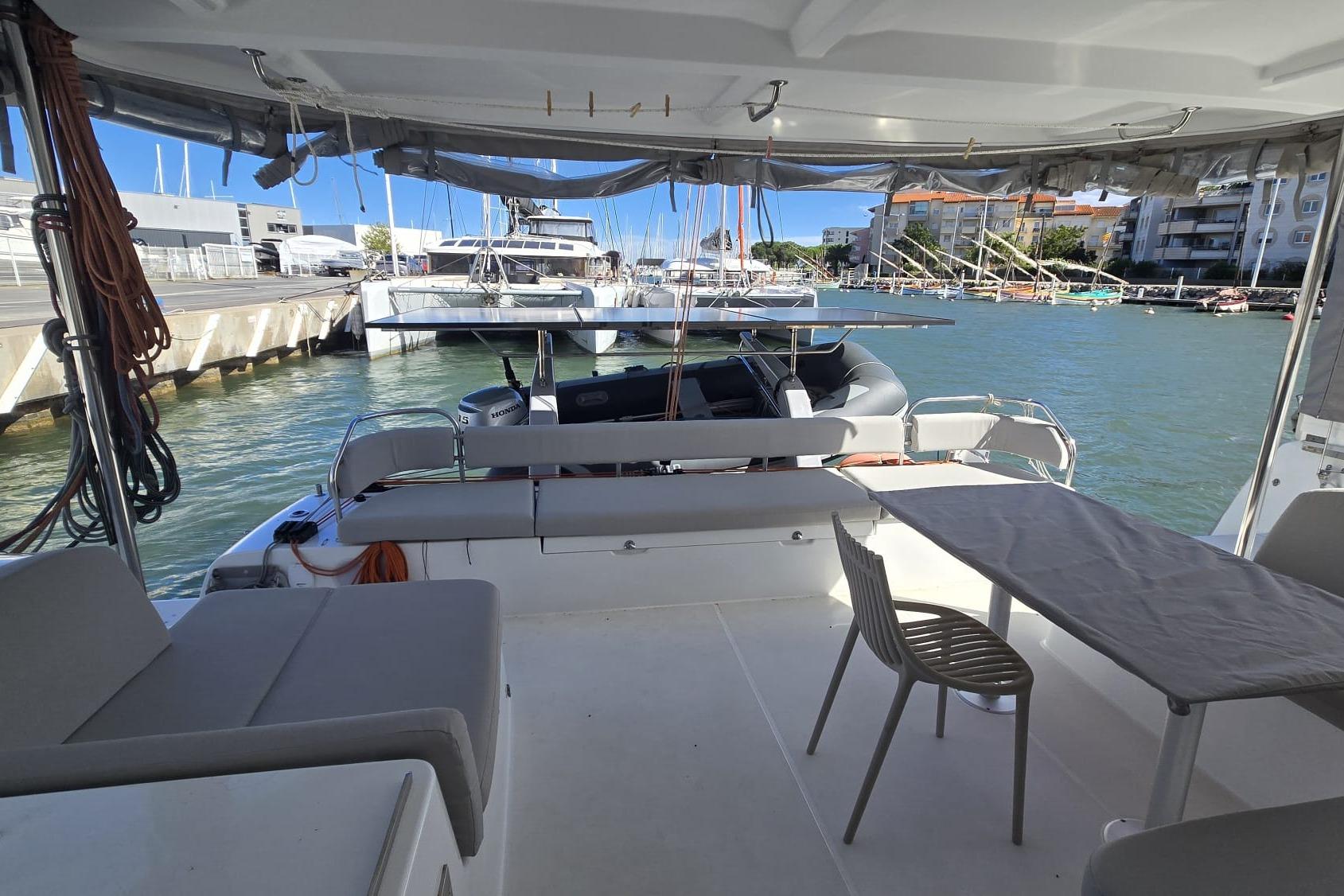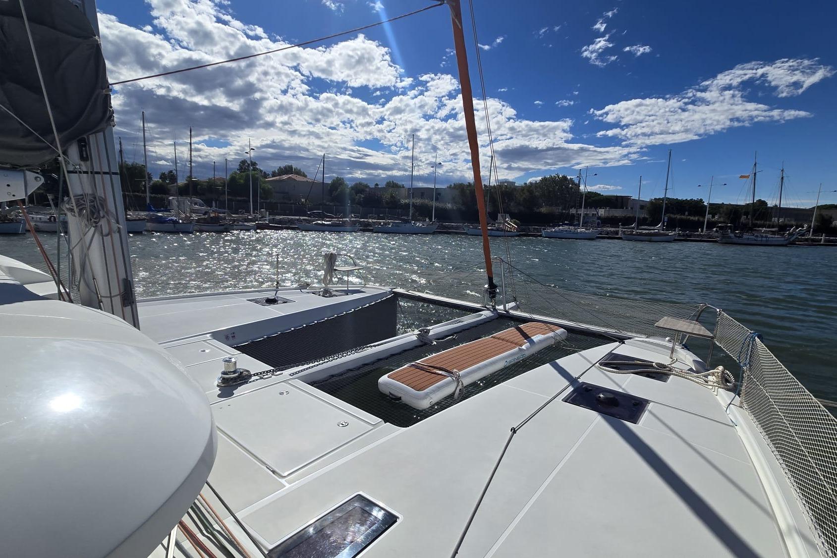 Options à bord : SAIL AWAY – PULSE LINE – Accastillage code 0 – Pack GARMIN (2 écrans, AIS, Vhf) – Commandes électriques – Chauffage diesel – Panneaux solaires (1275W) – Convertisseur – Bossoirs + Annexe Highfield – Pack audio Fusion…