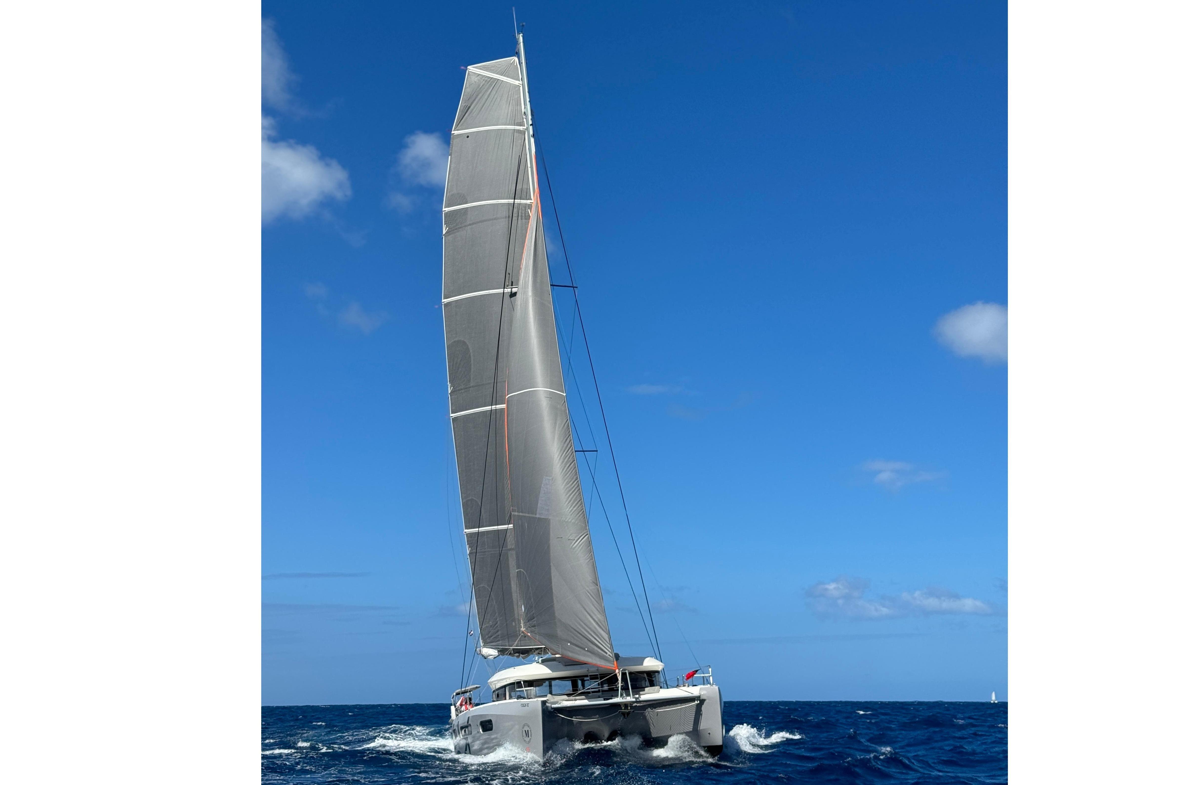 The Excess 15 is no ordinary cruising cat. With twin helm stations positioned at the aft end of each hull and Dyneema steering cables, she delivers genuine feedback at the wheel. Her VPLP-designed hull is a full tonne lighter than the comparable Lagoon 50, meaning she gets sailing in as little as 5 knots of breeze. Whether you're reaching under a Code 0 or tacking upwind with the self-tending jib, Tranquillity delivers the kind of sailing that makes you forget you're on a catamaran.