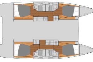Brokers Comments:ย A large, protected social area featuring comfortable seating, a dining table. Foredeck features a large forward trampoline and a dedicated, adjustable sunbathing/lounge area with cushions - a favourite spot at anchor. The helm station offers a centralized, raised station providing excellent sail sightlines and close proximity to the cockpit, featuring a double helm seat and full enclosure. The interior saloon is bathed in natural light thanks to the panoramic windows and features a harmonious U-shaped galley with premium appliances (often including a cockpit fridge, dedicated freezer. Comfortable Queen berths in the guest cabins, often with a clever 'Jack-and-Jill' shared shower configuration that maximizes privacy for all. The boat is powered by upgraded Twin Volvo Penta D2-50HP Diesel Engines (an upgrade over the standard engines). This catamaran offers excellent motoring performance and manoeuvrability.ย