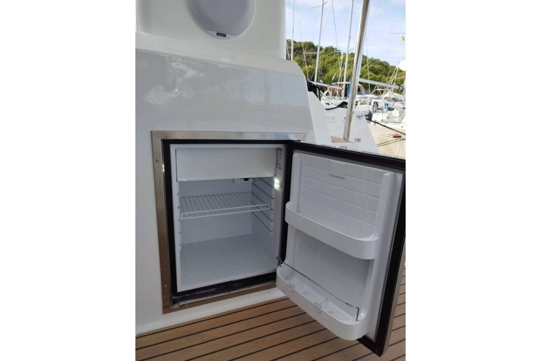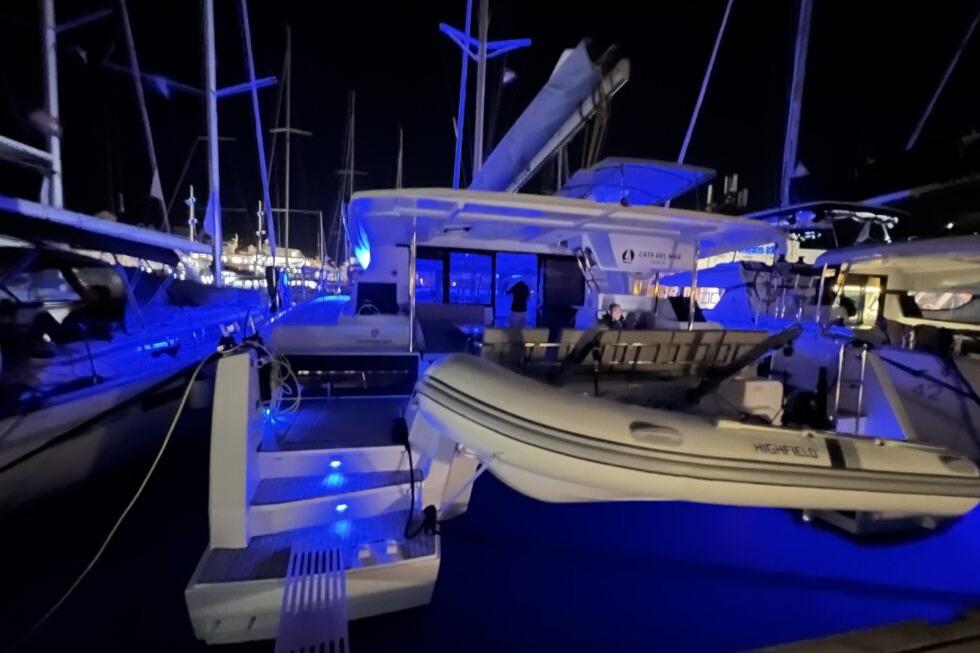 Manufacturer's Comments:ย The ergonomically designed raised helm station offers excellent 360-degree visibility, with all lines led aft to a centralized location. Equipped with electric winches and an integrated electronics suite (full Garmin package with multiple plotters, Autopilot), making this catamaran easy to sail single-handed, or manage as a couple. The yacht's inverted bows give her a dynamic and elegant profile, while the living spaces are designed for seamless indoor-outdoor flow.ย