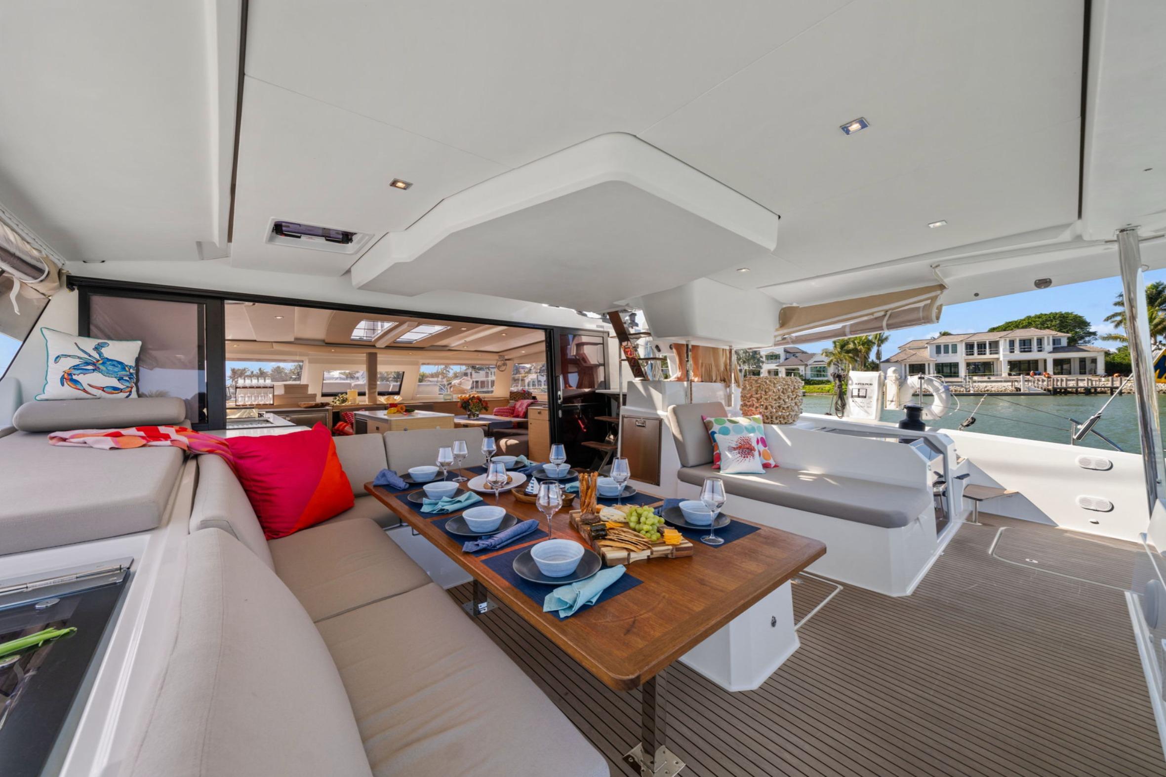 Halcyon is a Maestro 5 Cabin Layout 2024 Fountaine-Pajot Aura 51 that has less than one season of fully crewed charter. Never Bareboat and Fully Equipped for either continuing in charter (currently have 8 weeks already booked) or can sail away for the private and discriminating owner with no strings (or docklines) attached!