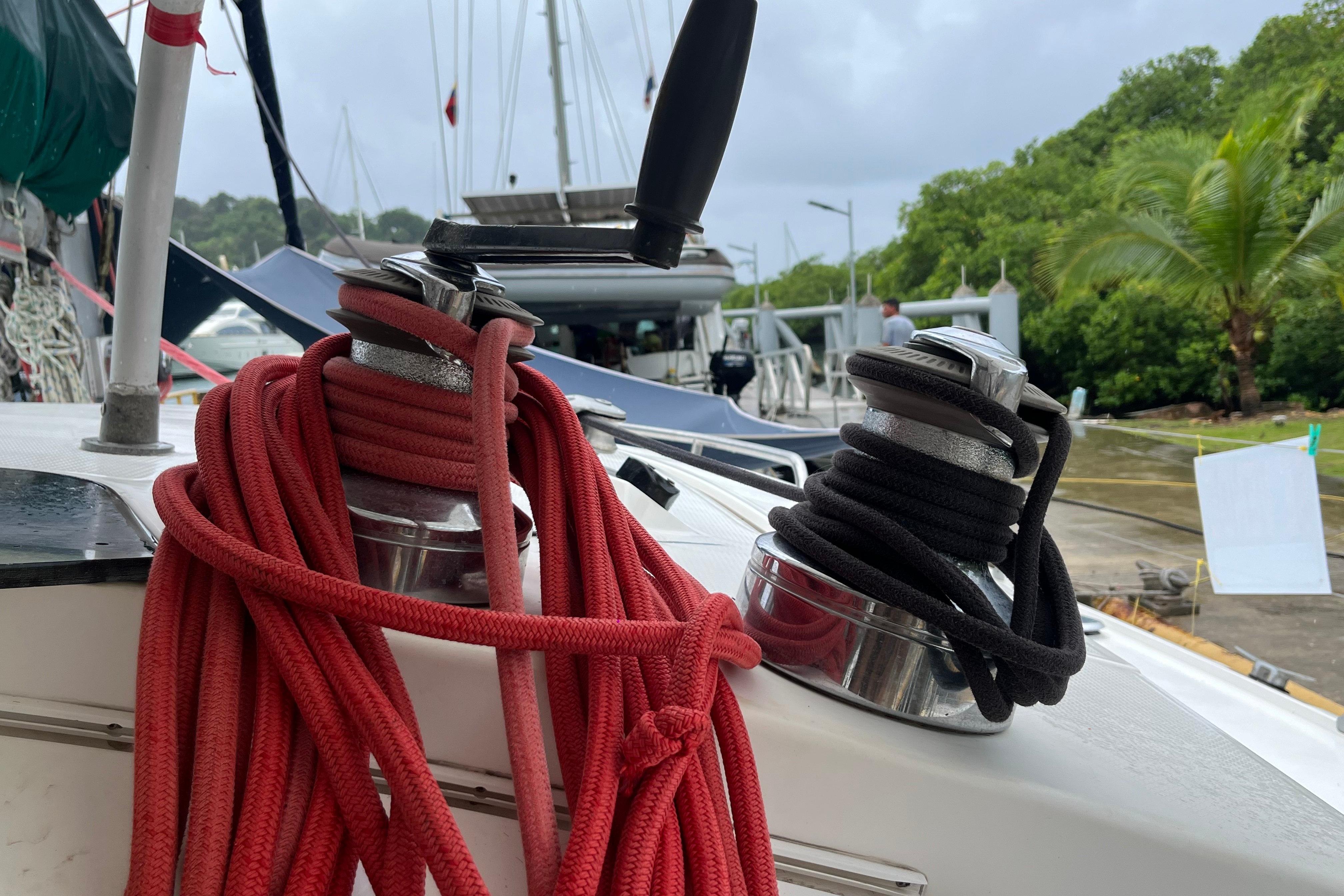 Six winches, Lofrans 1500 W windlass, anchor with 197 ft chain