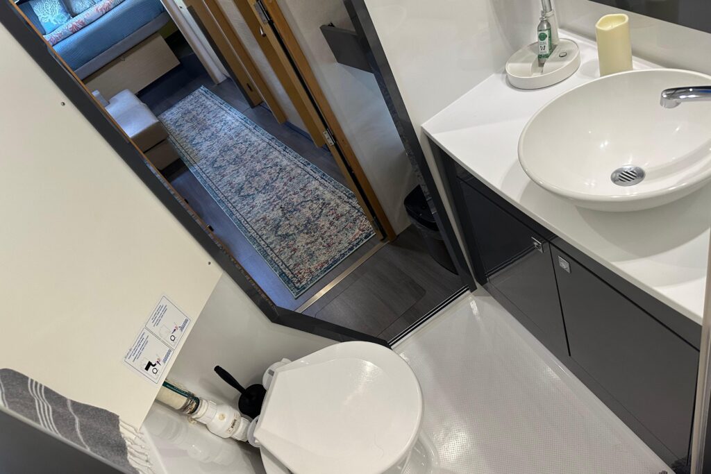 - Ventilation through 1 deck hatch + via 1 porthole overlooking rear deck