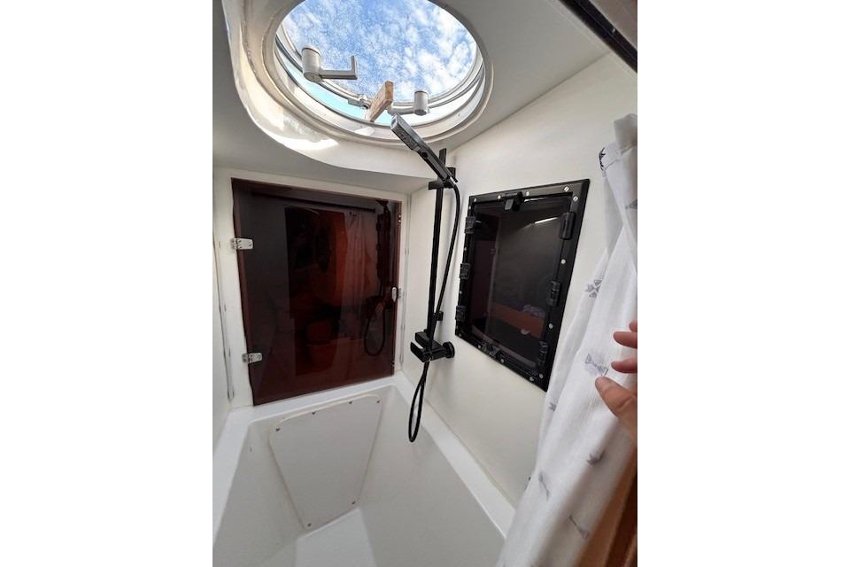 Prise d'eau de mer fonctionnant avec pompe 12v Echelle de bain coque tribord, douchette de pont