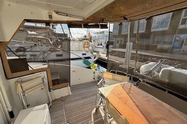 Fermeture du pont arrière par bâches transparentes pour l'hiver et bâches de protection solaire pour l'été,