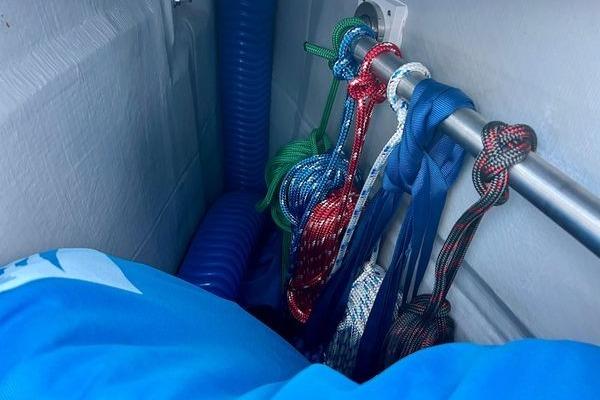 Many spare parts for engine, rigging, and all systems onboard