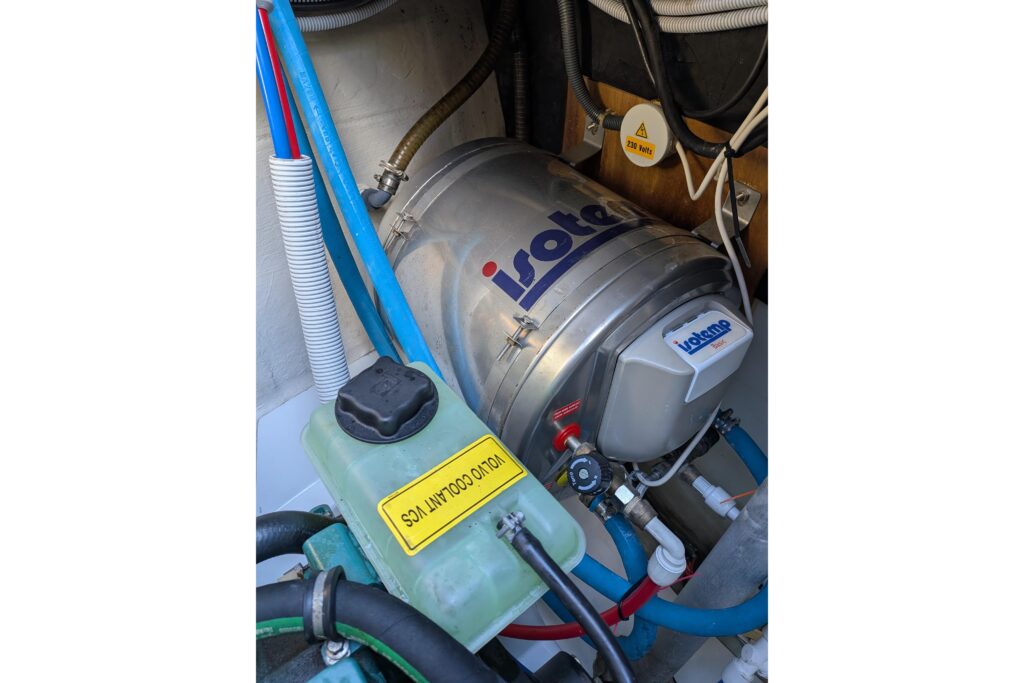 Hot water heater is an( Isotemp 24 liter) NEW 11/2022 in the starboard engine room but port