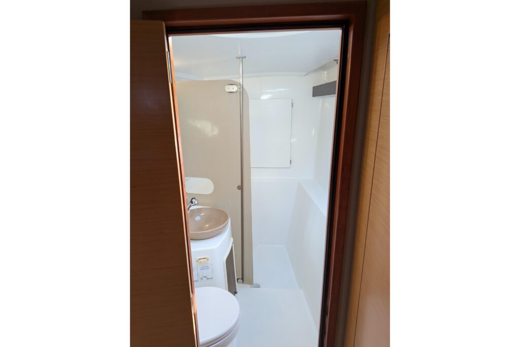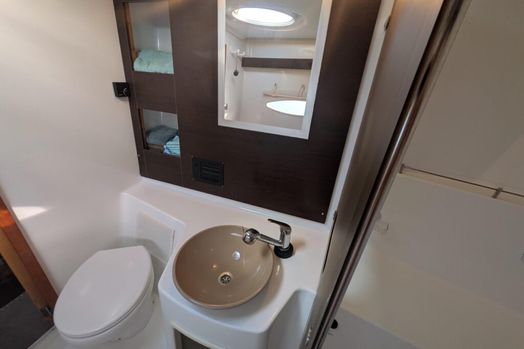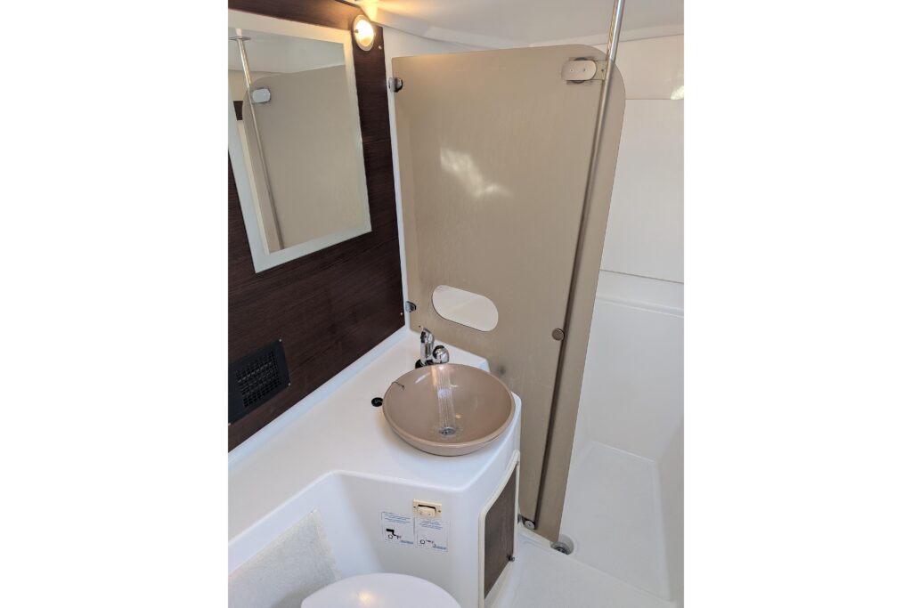 Holding tank is on the starboard side with enough storage for about 7 days