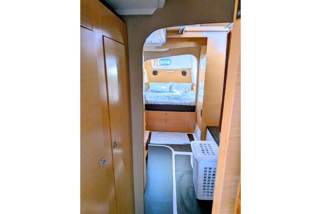 Cabin Layout 3 Cabins with queen side beds; 2 on the port side with the starboard side being