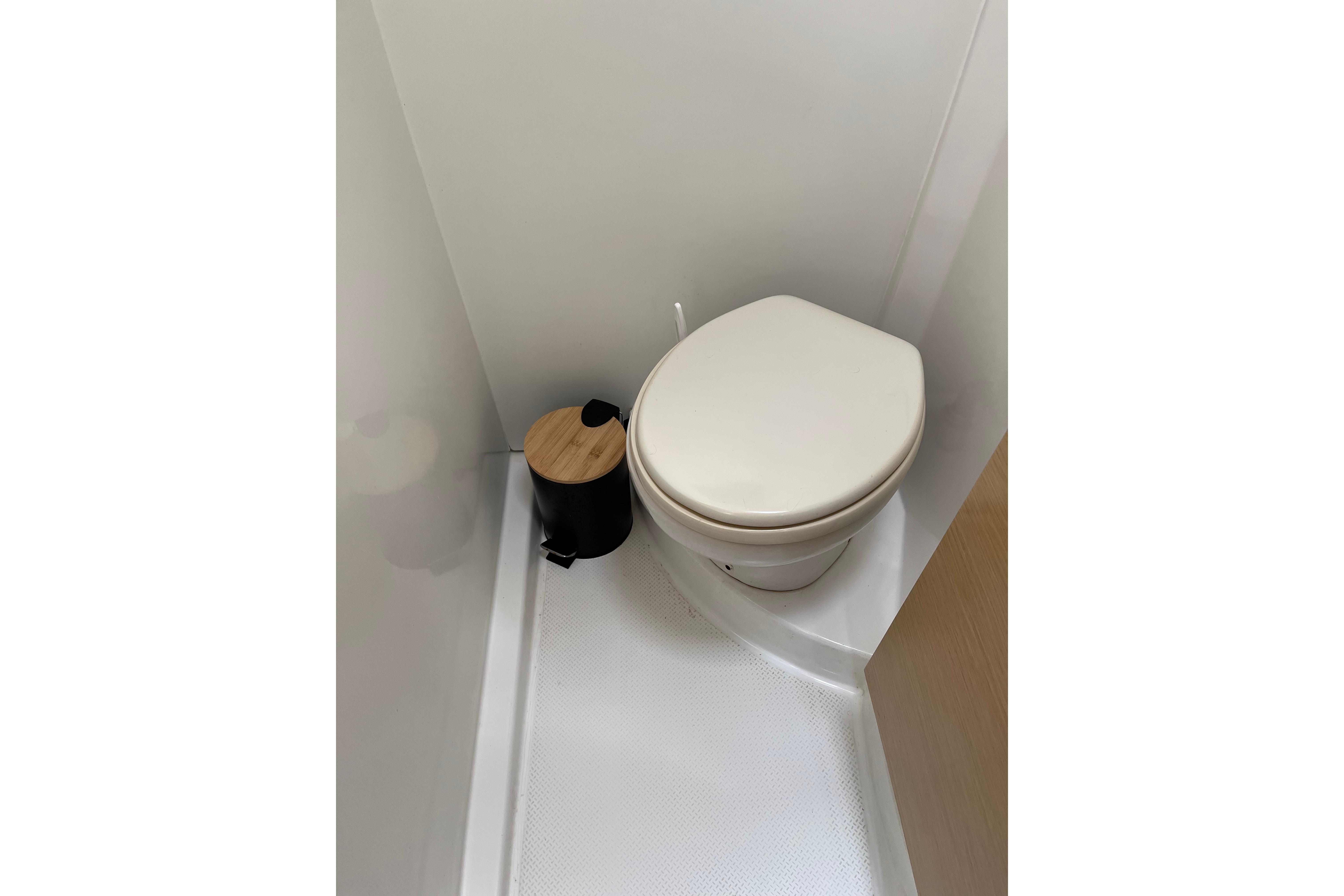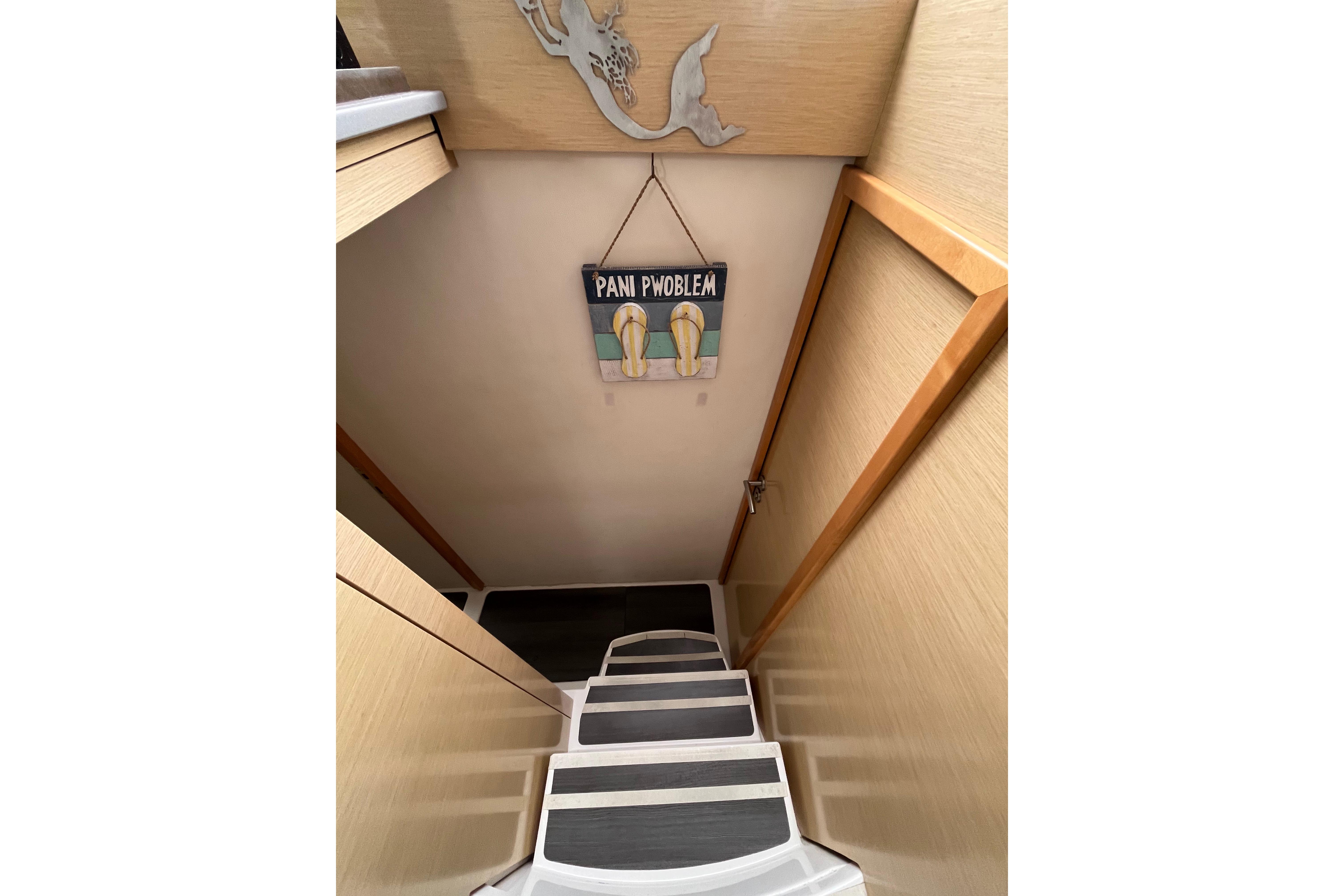 A larger opening between the cockpit and the saloon providing easy access to the galley.