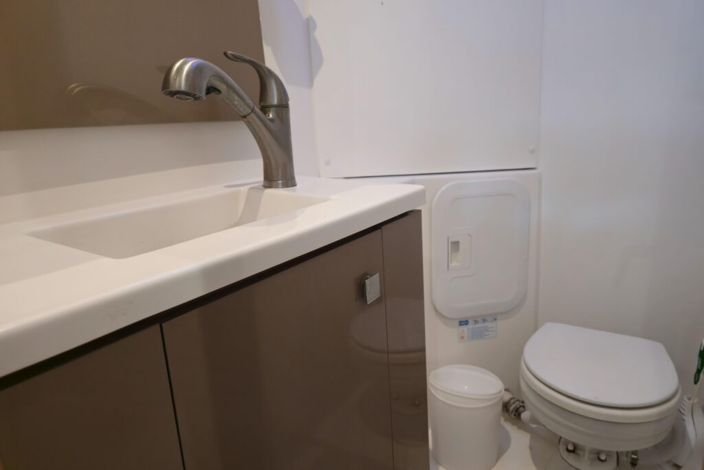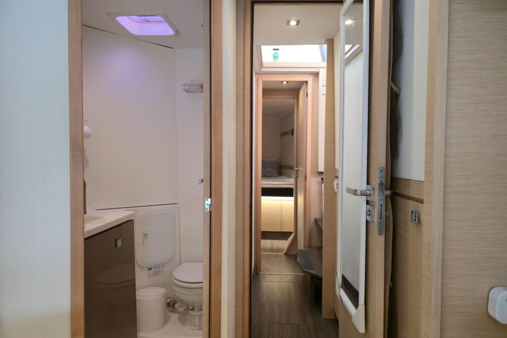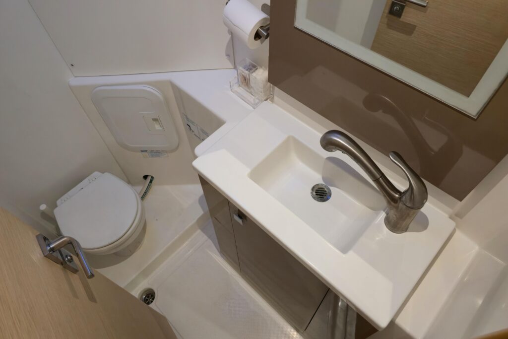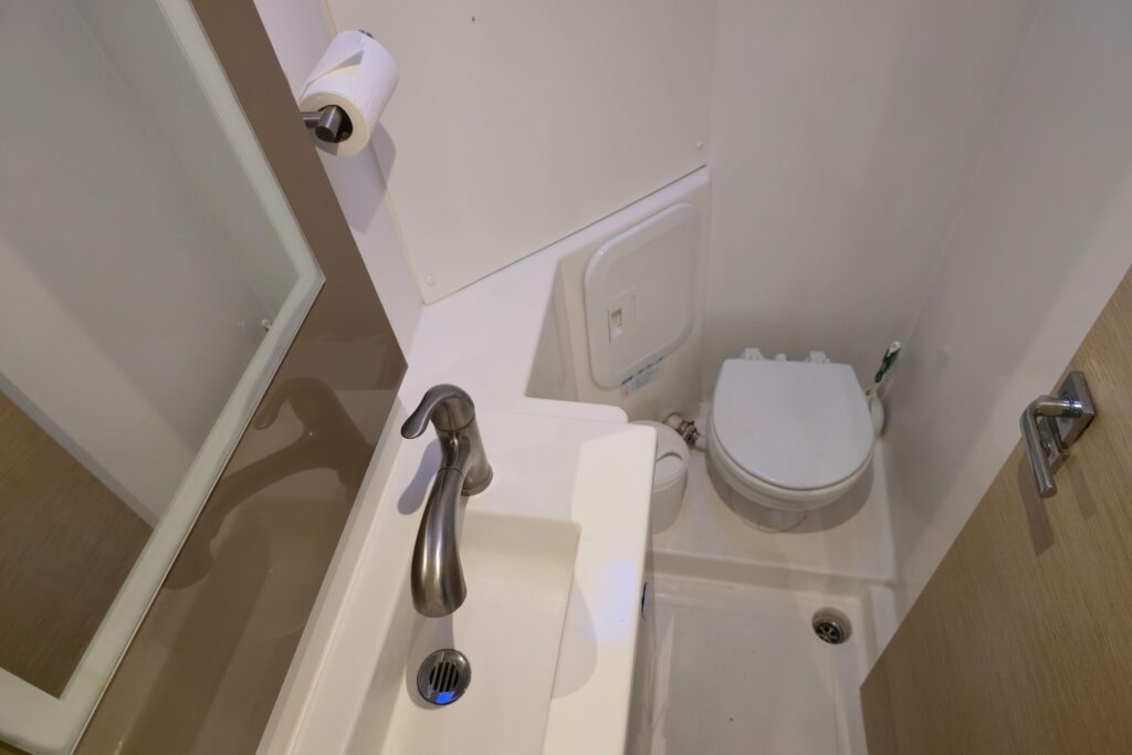 Uniquely enhanced from the standard 4-cabin, 4-head configuration, WaterLilly includes a custom walk-in shower in place of one head, offering an elevated onboard experience without sacrificing space to accommodate guests.
