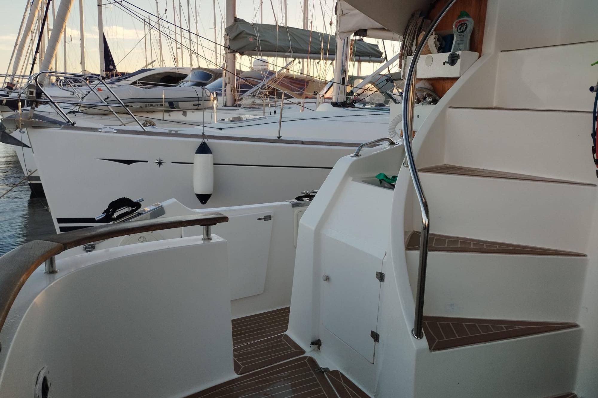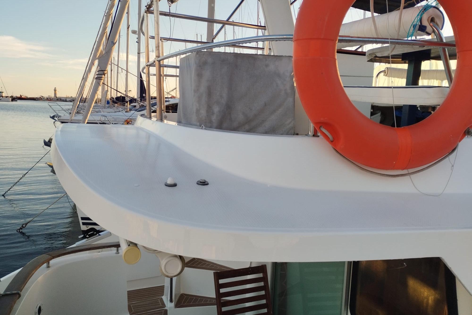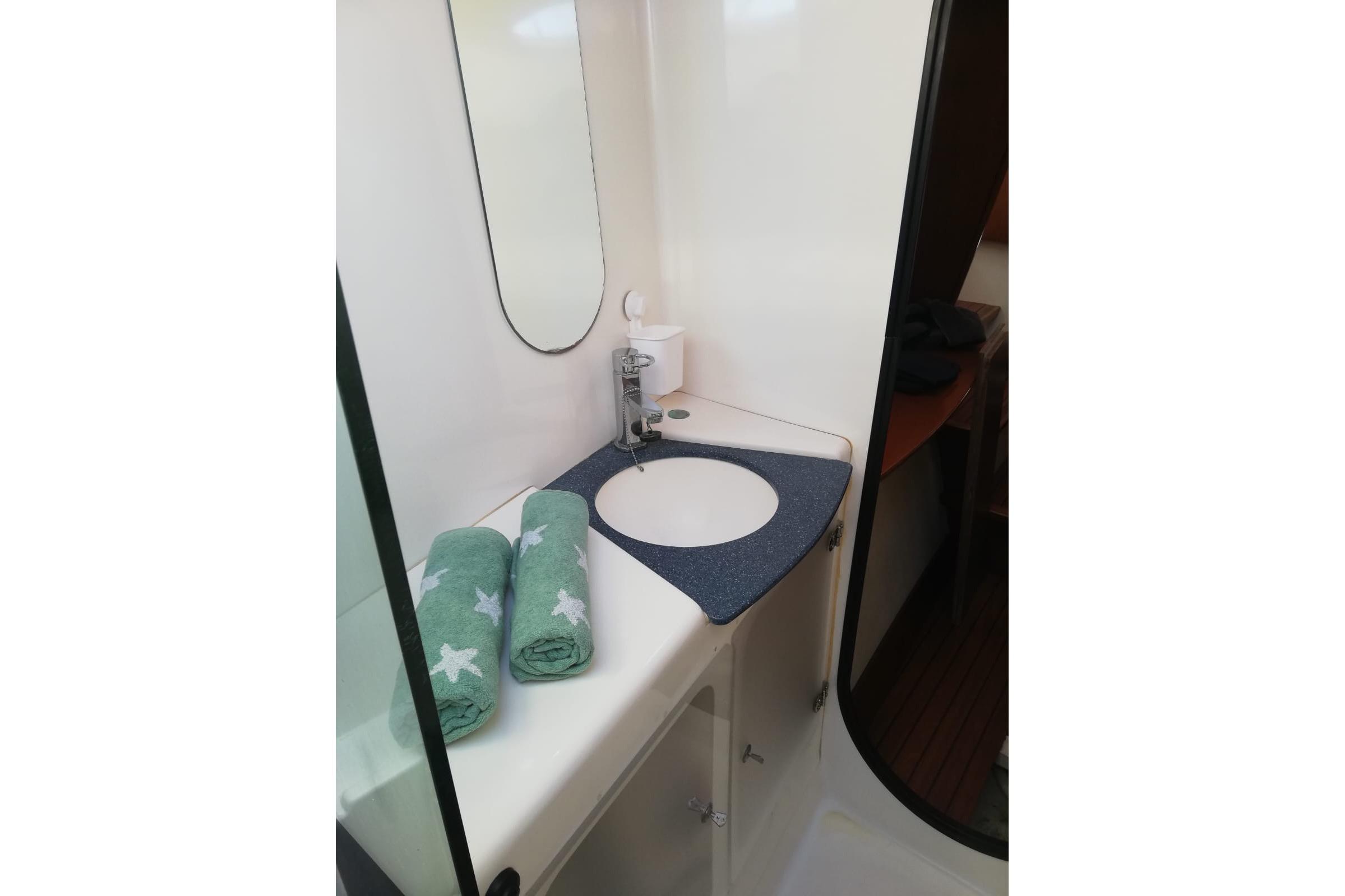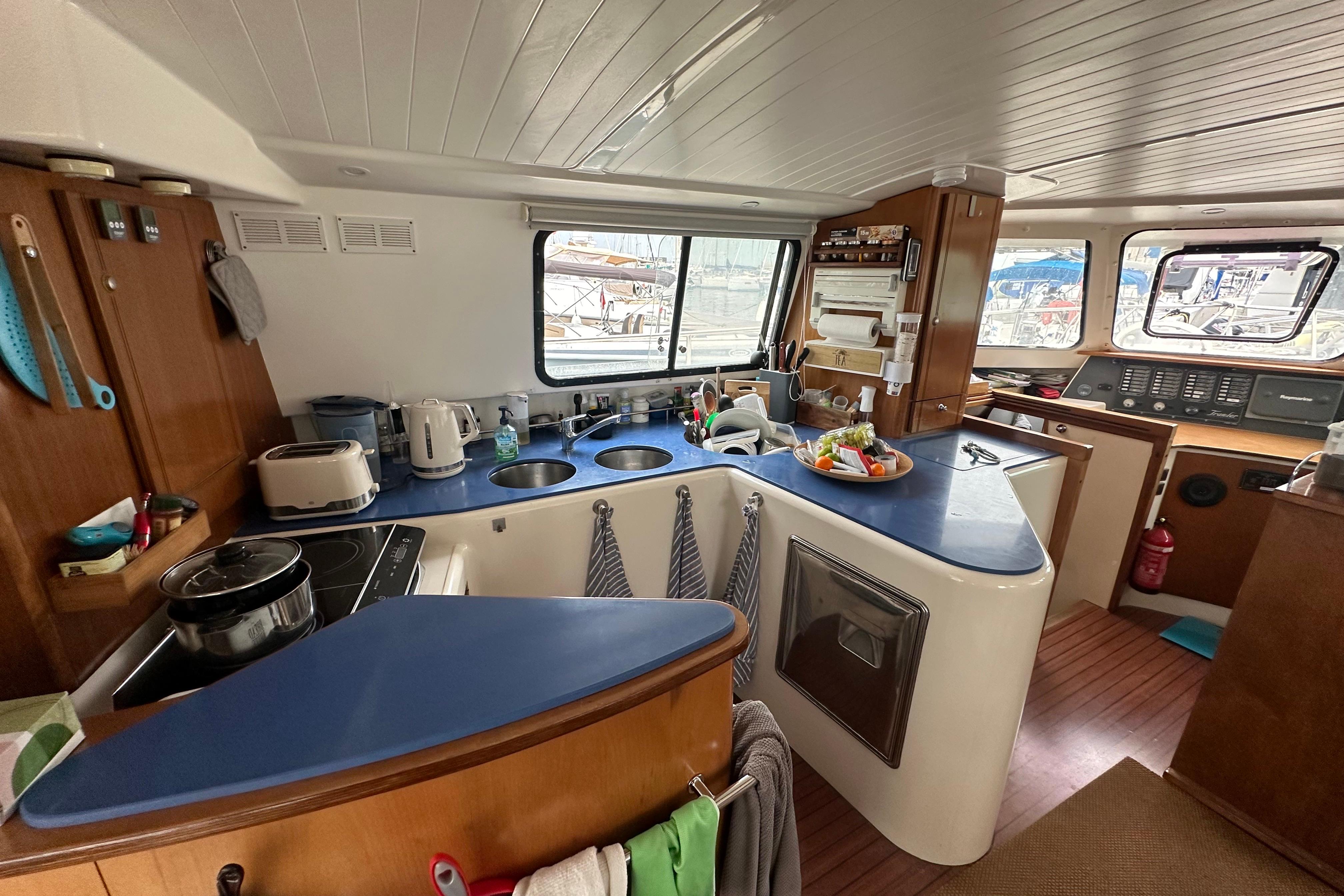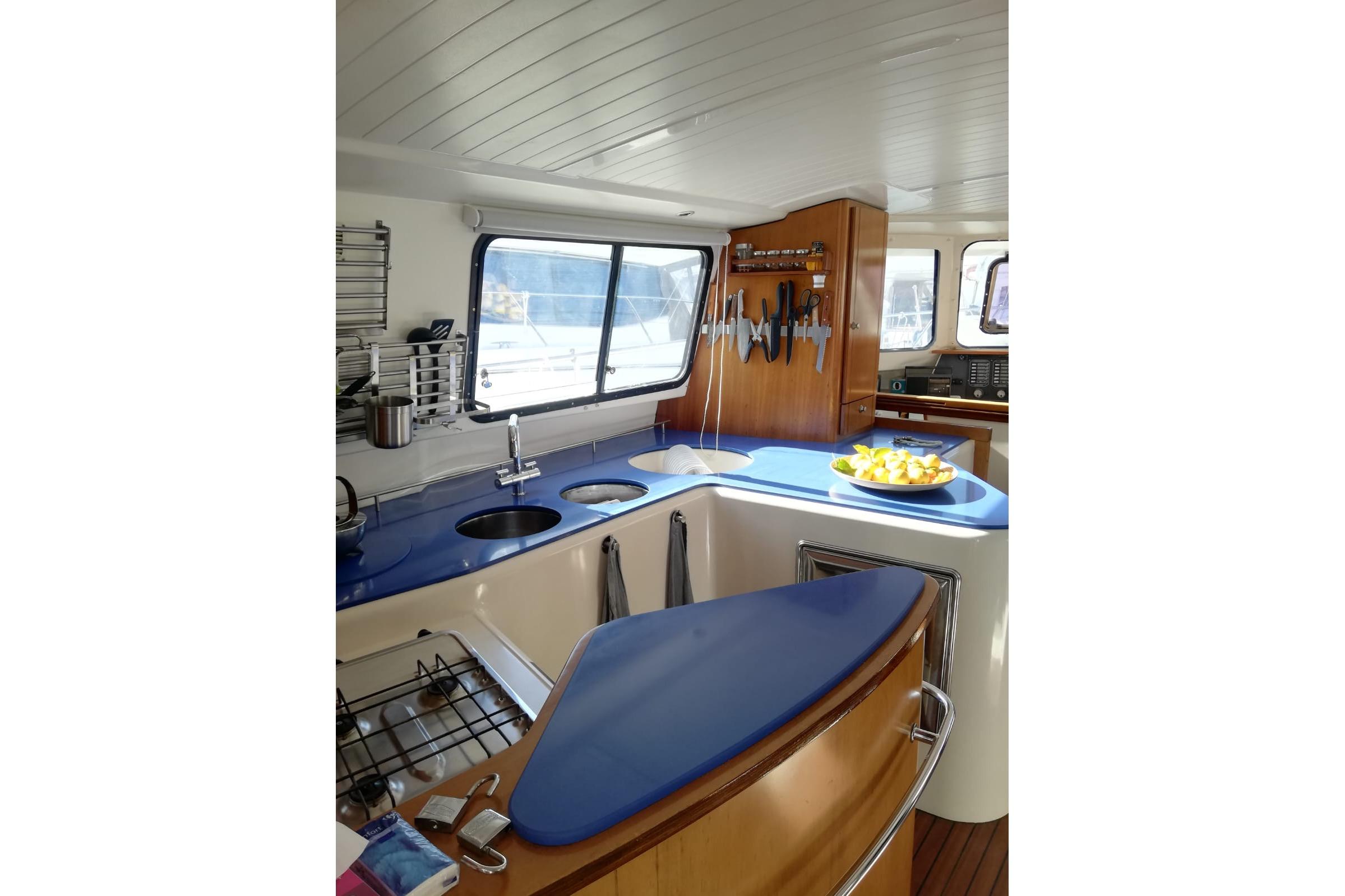 Avec ses deux moteurs Yanmar de fiables, il peut parcourir jusqu'à 1000 miles à une vitesse moyenne de 10/12 kn.