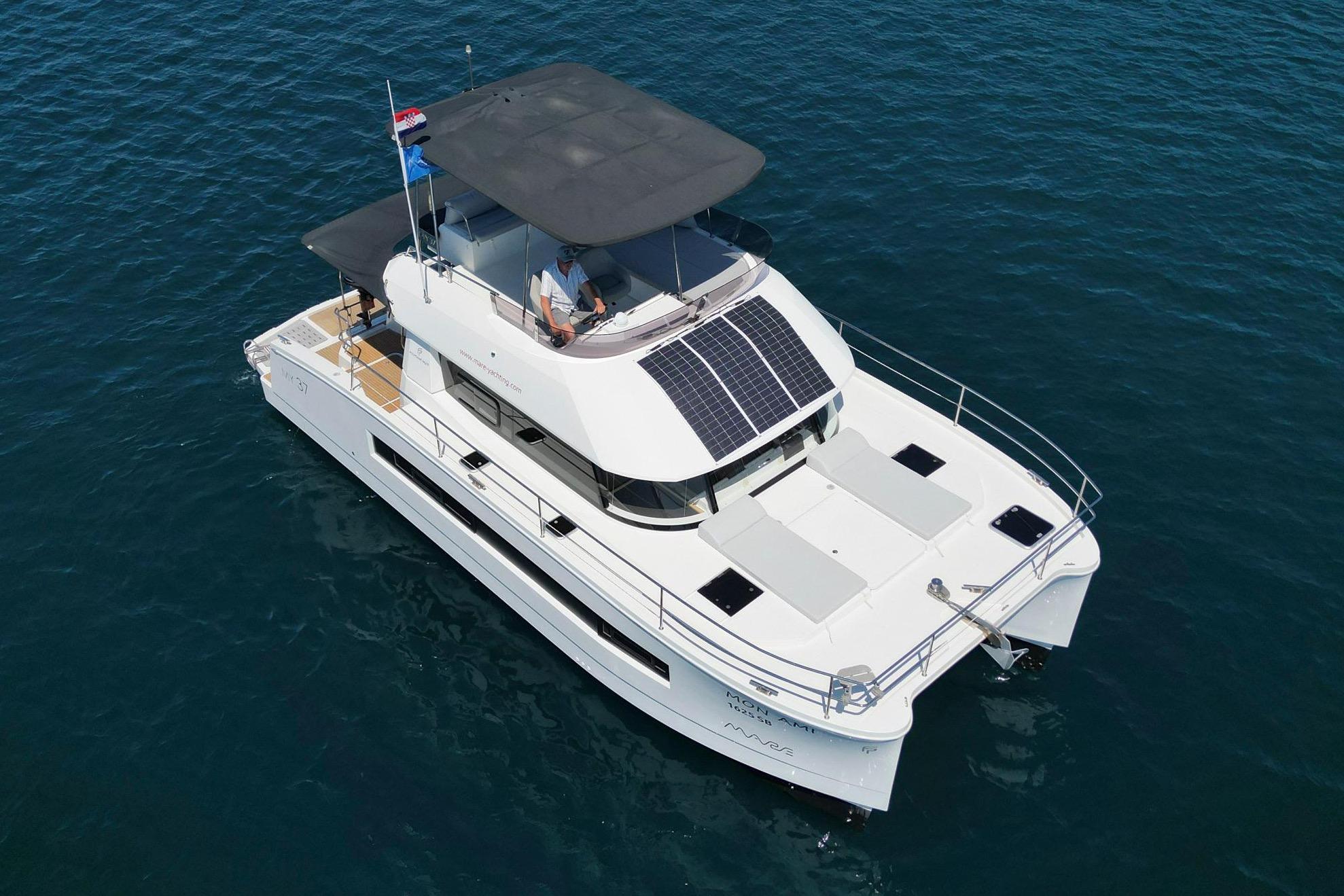Dieser Motorkatamaran Fountaine Pajot MY 37 mit dem schönen Namen „Mon Ami“ wartet auf einen neuen Eigner.