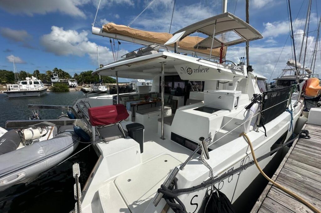 Nowhere is a beautiful 2016 Saba 50 Quintet 6 cabins / 6 heads with an additional 2 single cabins in the forepeak. With engines recently serviced and freshly waxed, she has been well cared for by knowledgeable crew and is ready for new adventures. This catamaran for sale is well outfitted with a Watermaker, Underwater Lights, Solar panels, Radar, AIS, AC, Generator, additional refrigeration, new batteries and windlass 2025, etc. The FP Saba 50 offers roomy entertaining zones: full-height salon, aft cockpit with targa hardtop and elevated flybridge lounge/helm and offers large volume yet shallow-water access. Nowhere is ready and waiting in the worlds most pristine waters to take you cruising whether on extended trips with a comfortable live-aboard or charter set up.