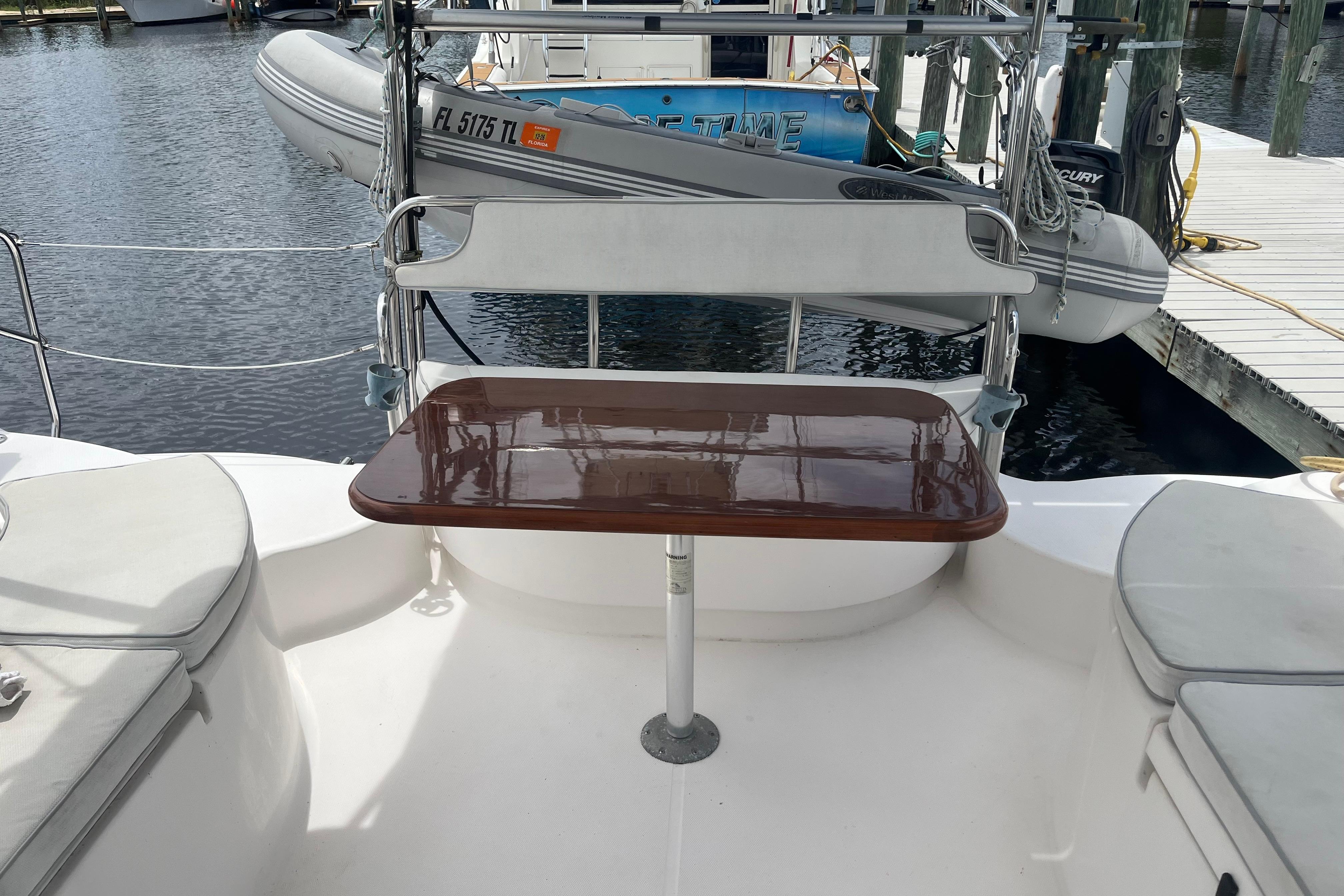 The open stern and transom design offer effortless dock access, while the twin 15 HP Yanmar diesels provide reliable, highly economical propulsion. All lines lead to the cockpit for easy handling, and the spacious cockpit layout is ideal for family cruising and entertaining. From the salon, pilothouse windows provide full 360° visibility, enhancing comfort and safety under way.