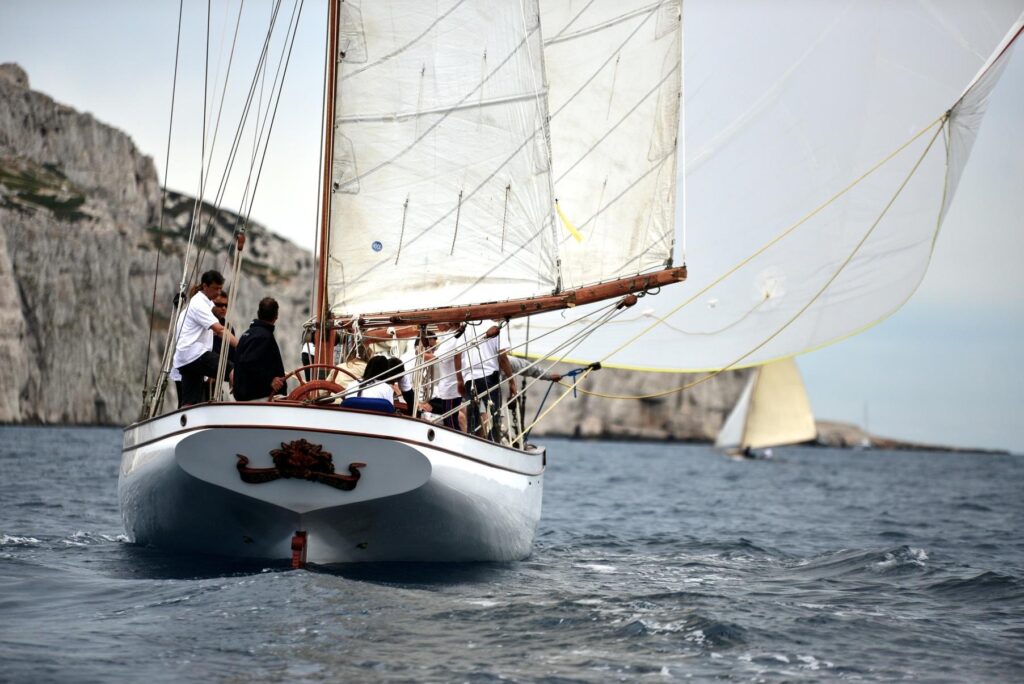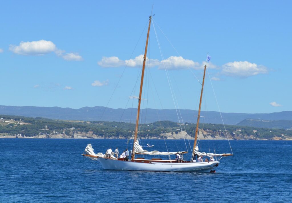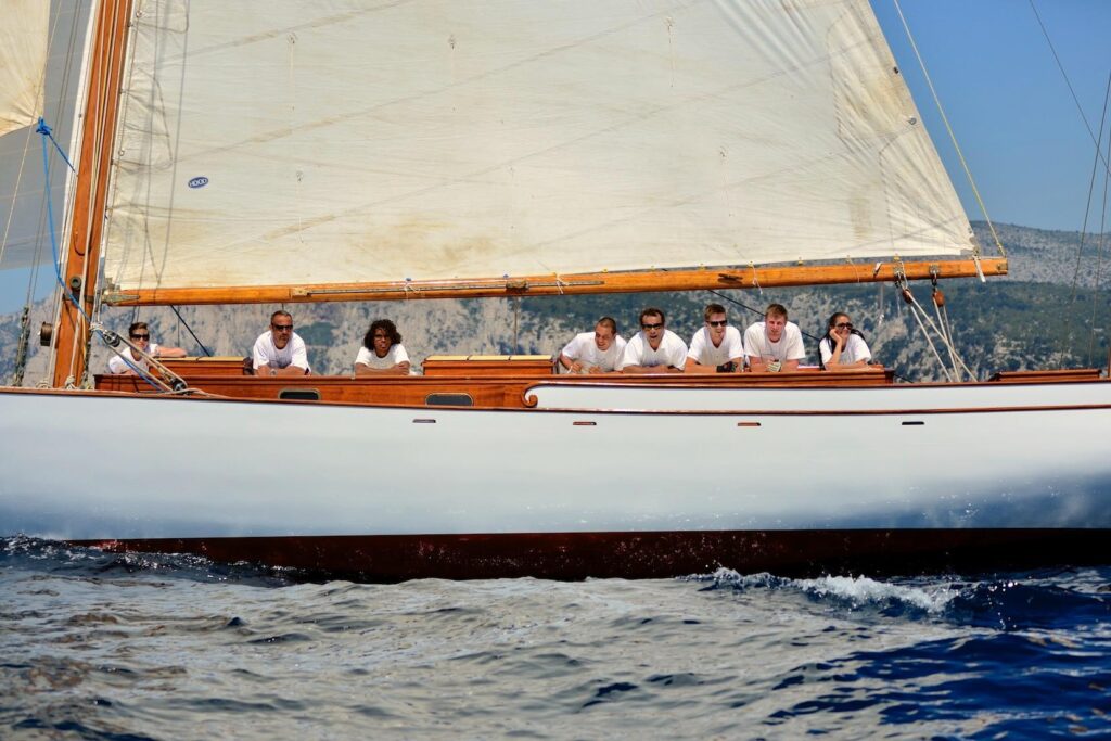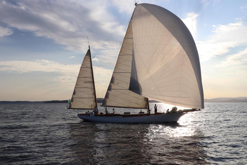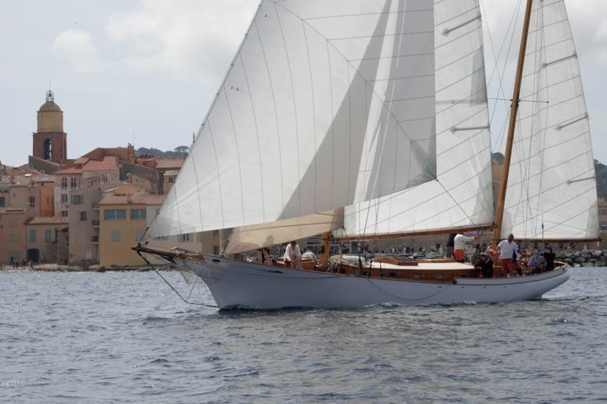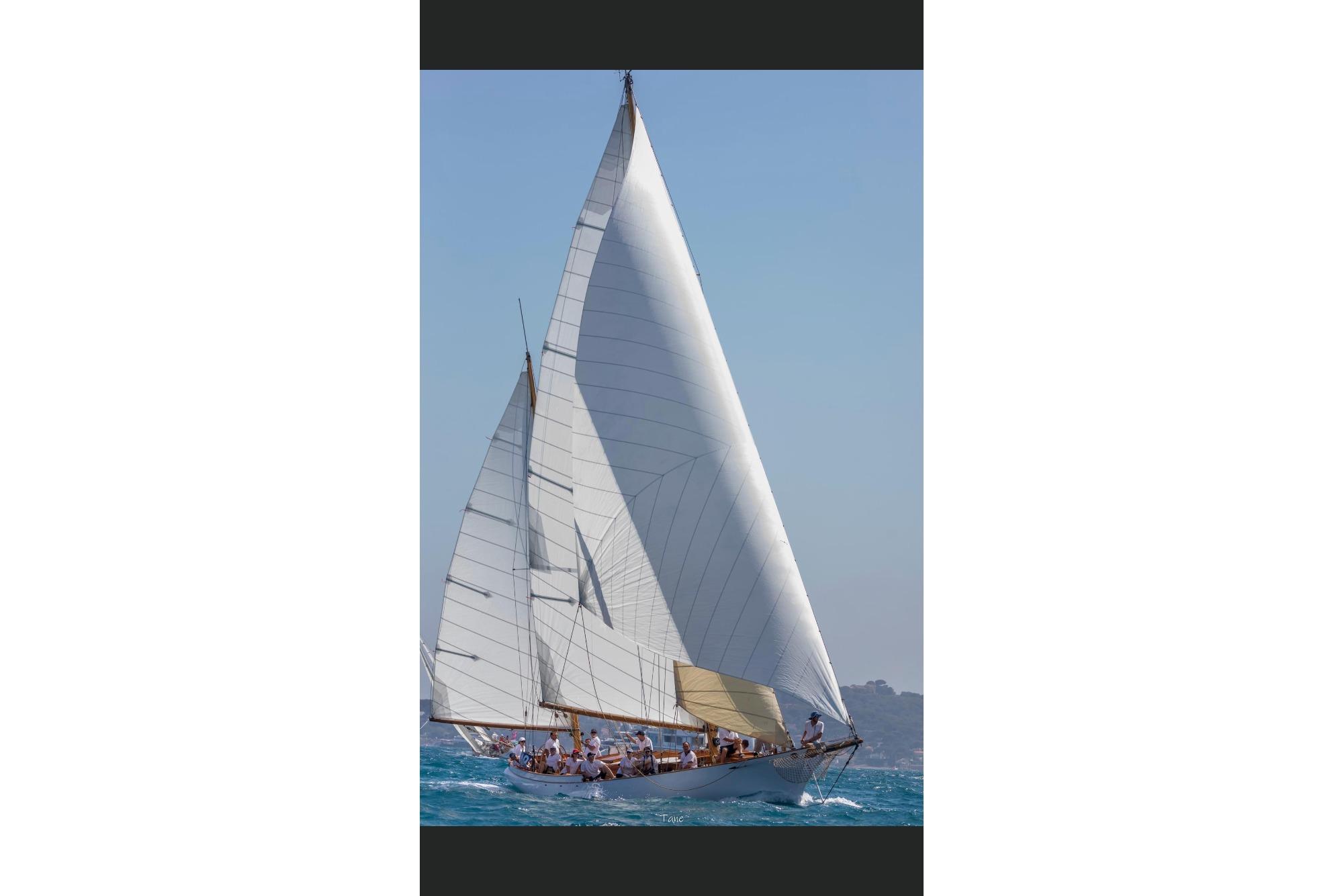The boat has successfully competed on the Mediterranean classic circuit over the last 5 seasons with good success. She is a very lively yacht and a certain head-turner at the dock with her elegant lines and cambered rigs.
