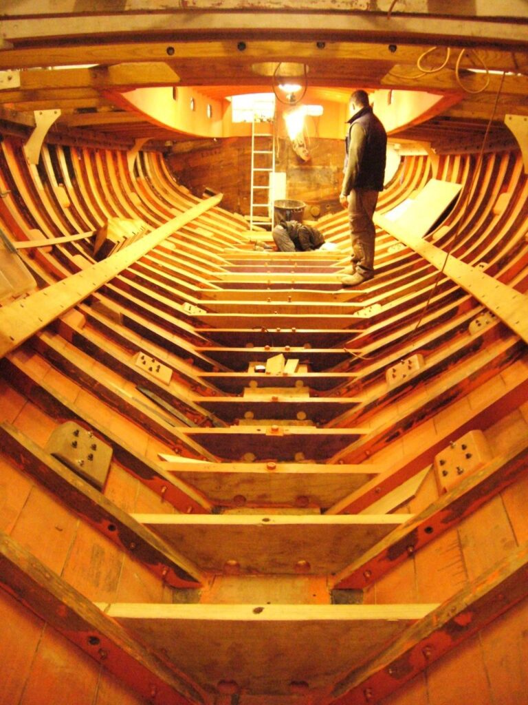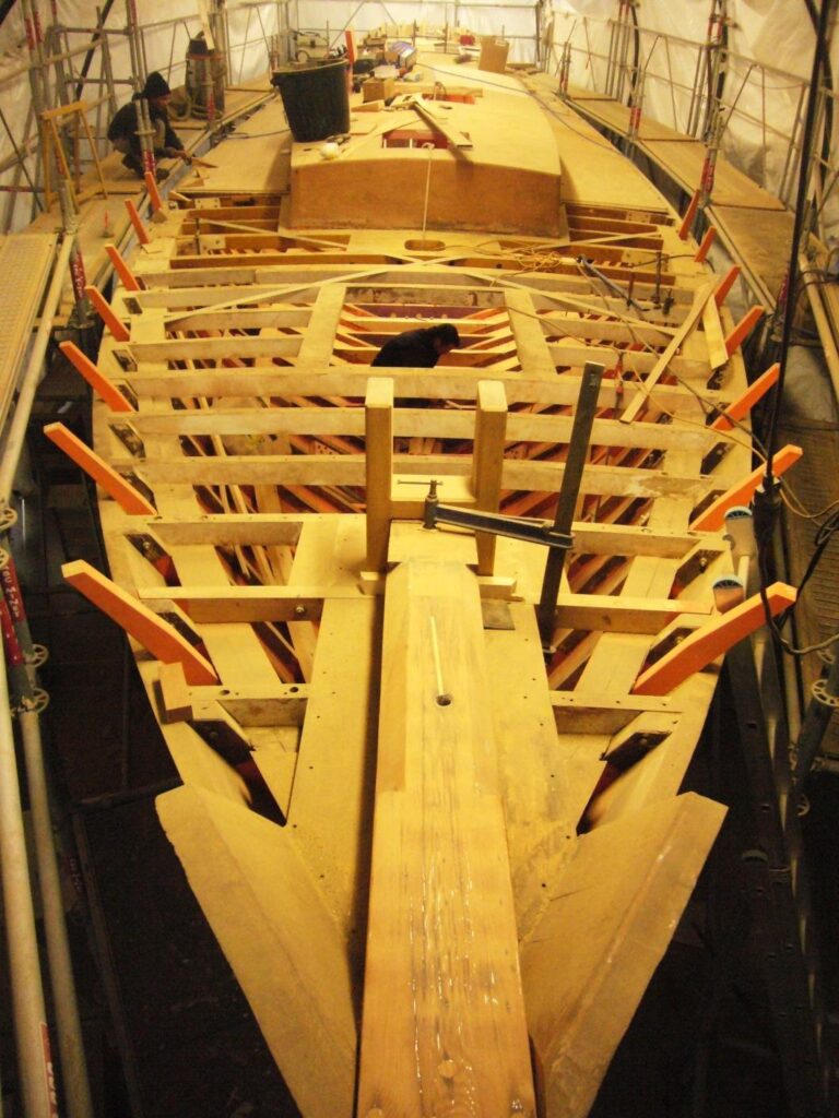 In 2013 the wood above the waterline, Oregon pine, and below the waterline, Iroko planking, was replaced as well as the oak wood for the frame steam and the Teak for the deck. The deck is totally new as well as the superstructure.
